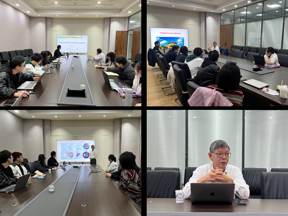 11月20日,在施晓文教授的陪同下,章大卫教授参观了实验室和仪器设备,并与同学们进行了深入的交流讨论。施晓文教授向章大卫教授详细介绍了他们近期在壳聚糖水凝胶电组装技术方面的研究成果,该技术可以实现壳聚糖水凝胶的高效制备,在生物医学、组织工程等领域具有广阔应用前景。章大卫教授对该研究方向表示了高度赞赏和兴趣,并提出了一些建设性的意见。双方还就拟开展的合作方向进行了友好的探讨。
