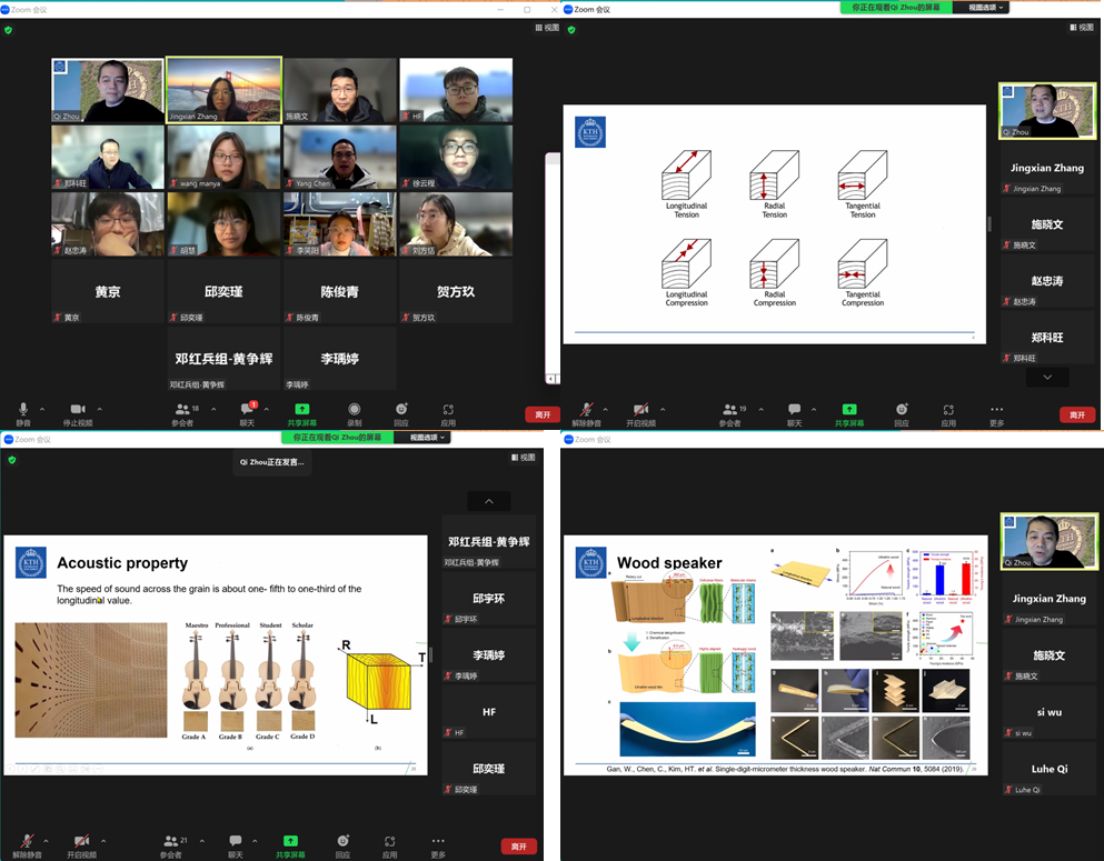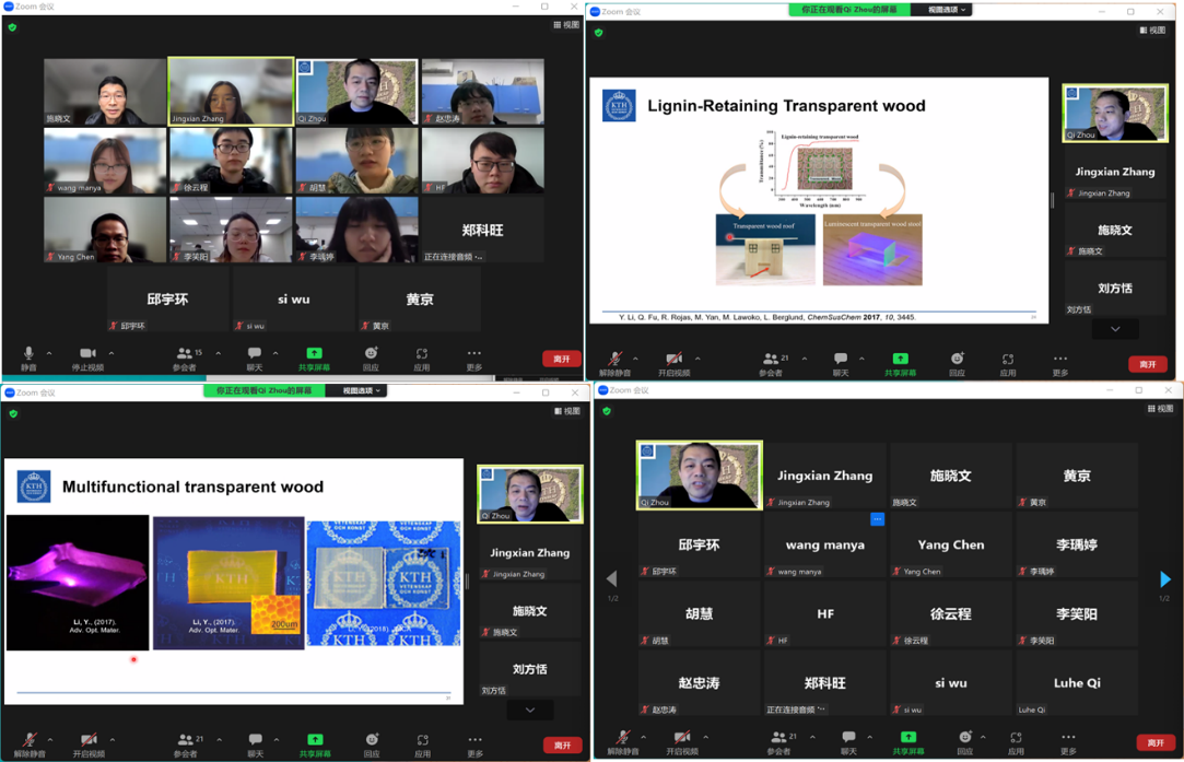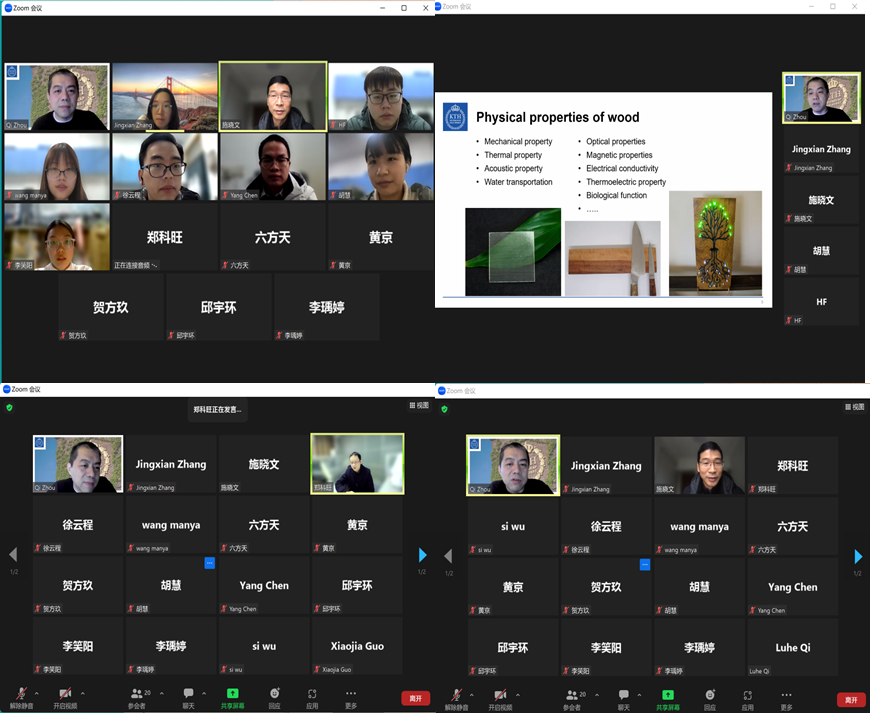周教授的讲座总是激情洋溢,让大家感受到木头材料的奥妙、科学的魅力以及学术工作者的科研热情。讲座期间,周教授乐于与学生交流,热情解决同学们在科研中遇到的大小问题。同时,周教授也向施晓文教授以及91沈先生 表示了感谢,并盼望在疫情结束后能再次亲临91沈先生 与老师同学们现场交流。