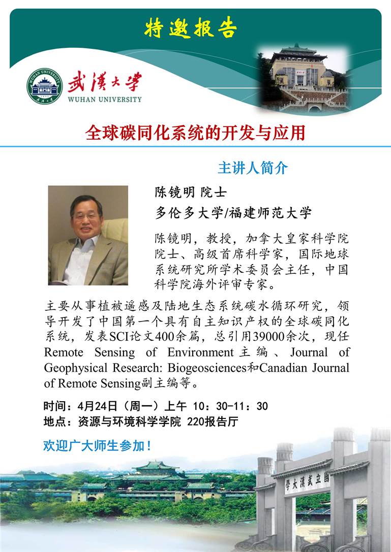 4月24日上午 陈镜明 院士 全球碳同化系统的开发与应用