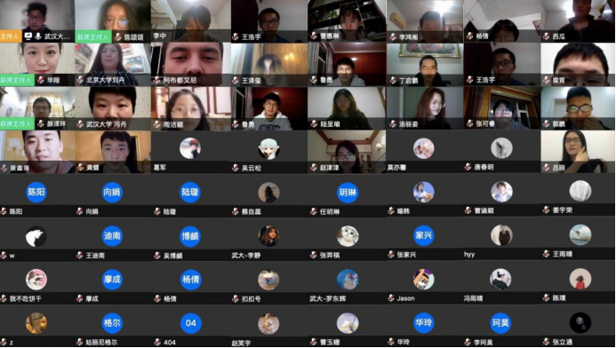 。以上种种都无不令人感动。希望两院搭建的这个交流平台能够持续良好的互动,进一步寻求双方在党团建设、学习科研、就业创业等方面的合作沟通,也希望两院青年学子能够在今后的学习生活中,将在疫情中展现的毫不畏惧、勇于奉献的精神发扬光大。最后她代表武大资环学院向北大环科学院的老师同学发出邀请,待到明年樱花烂漫时,我们在珞珈山下共聚首!