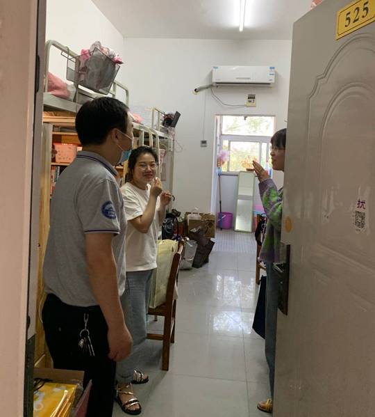 学院党委书记刘兴国、院长杜清运、党委副书记雷起宏和冯丹等学院领导都早早地来到学院,以熟悉的笑容、亲切的问候在学院迎接返校学子,与学生合影留念,进行亲切交流,去宿舍看望学生,传达学院的关心关怀,表达对于学生未来发展的祝福与期待,让返校学子们真正体会到回家的感觉。