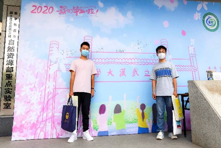 (2018级测绘工程硕士毕业生周泊远与毕业视频合影)