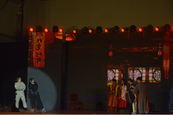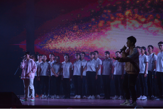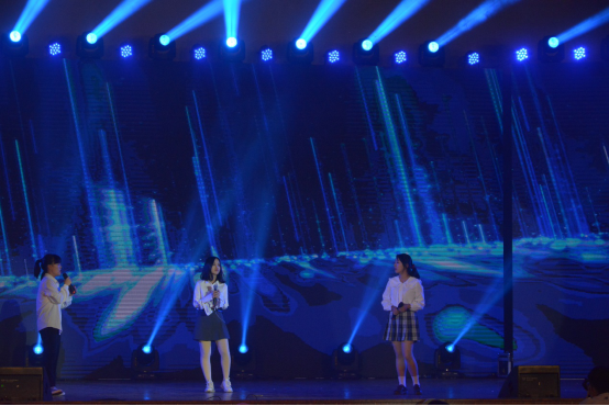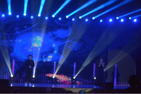 深蓝色的灯光下,两位同学合唱了歌曲——国王与乞丐,温柔的声线让同学们近期紧张的心情都放松下来。