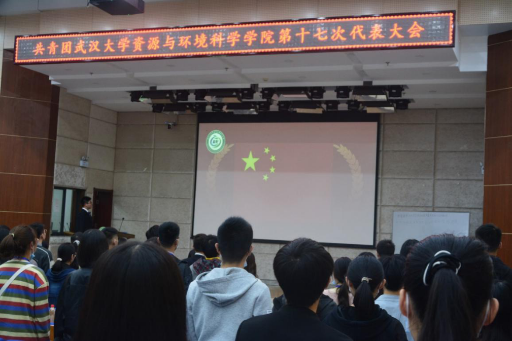 会议开始前,全体与会人员观看了学院主题团日合集和共同抗疫相关视频。大会在庄严的国歌声中拉开帷幕。