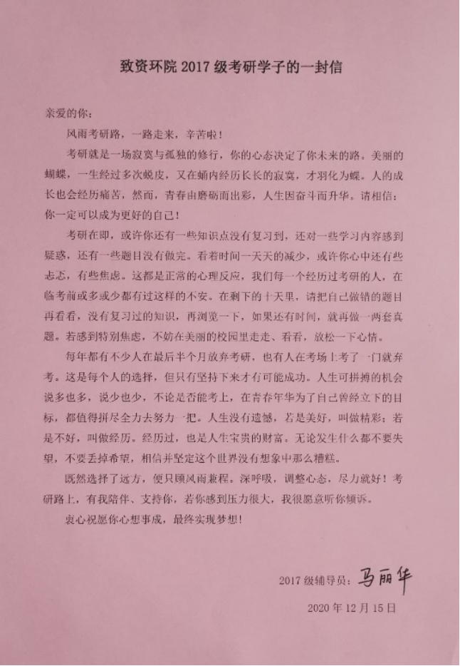 收到“加油包”的资环院考研学子都十分开心与感动,不少学生在朋友圈、QQ群中表达了对学院的感谢!这一份冬日的温暖,已传递到了每一位资环院考研学子的心间。考研是一条布满风雨的路,愿意踏上这条路的学子既勇敢又坚毅。你们在这条路上的行走并不孤单,有并肩战斗的同学,有关心你们的家人和朋友,也有全力支持你们的老师们,都在陪伴着你们砥砺前行!