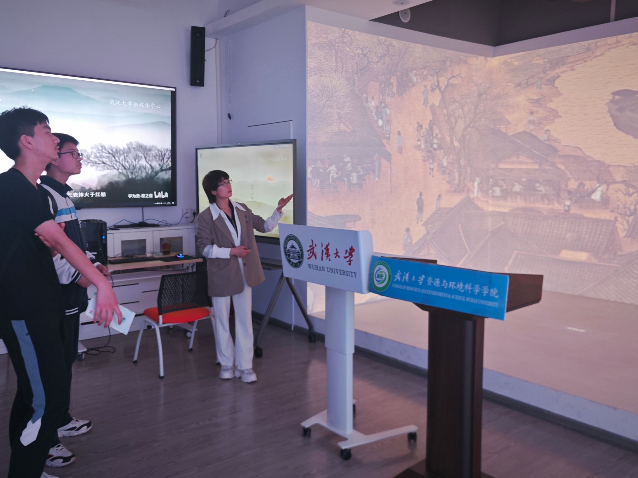 虚拟校园系统”,展现了元宇宙中的虚拟校园,还原校园风光,让体验者身临其境地行走在武大校园,展现了学院的专业特色。