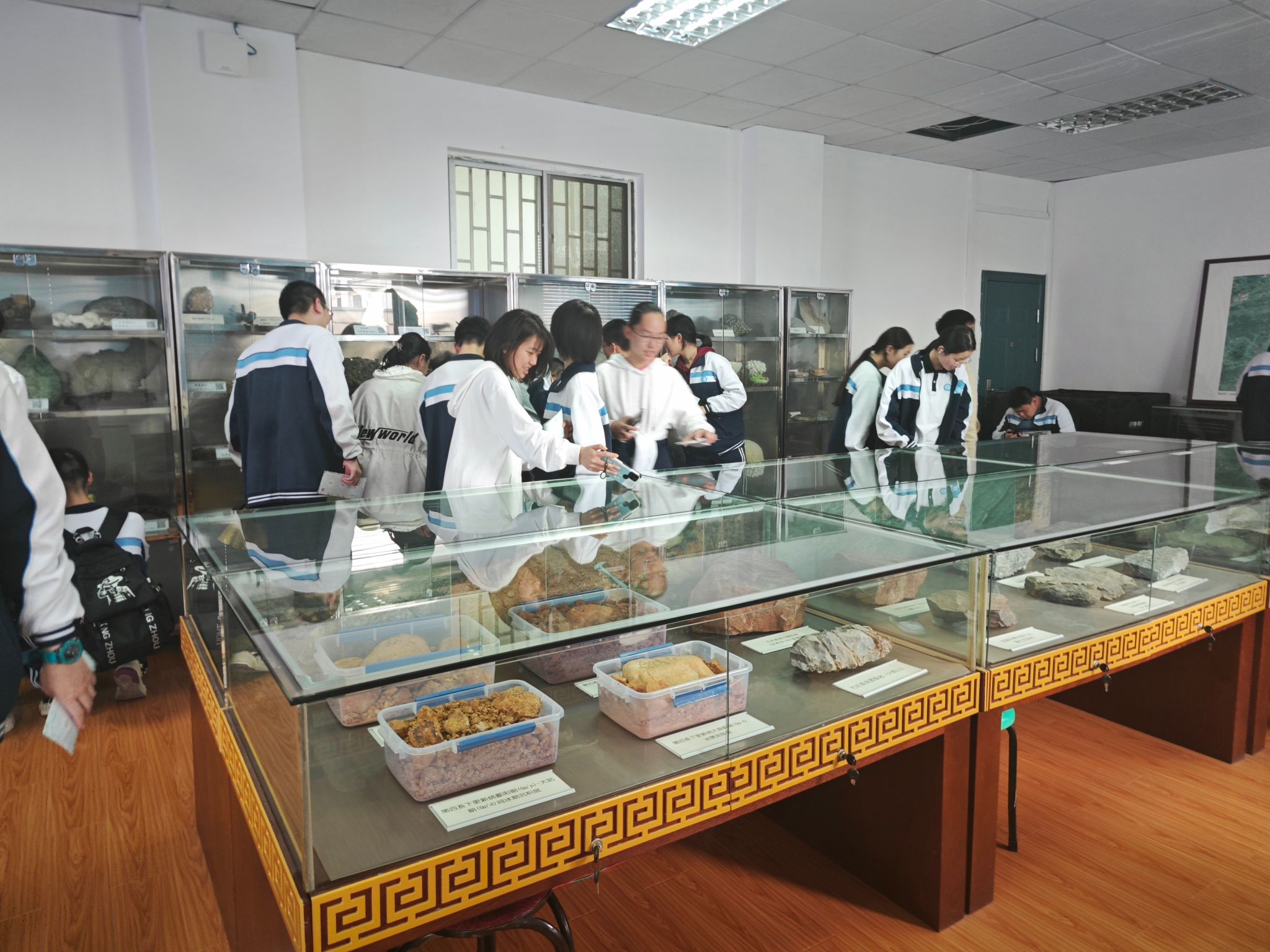 学院主楼也开设了“庐山标本”、“空天地网”、“3D世界”三个打卡点,让高中生们进一步参观。“庐山标本”环节中,学院的老师带同学们参观了各种岩石标本,并展示了往期地理实习活动的风采。同学们还零距离体验了无人机,戴上专业眼镜感受3D世界。
