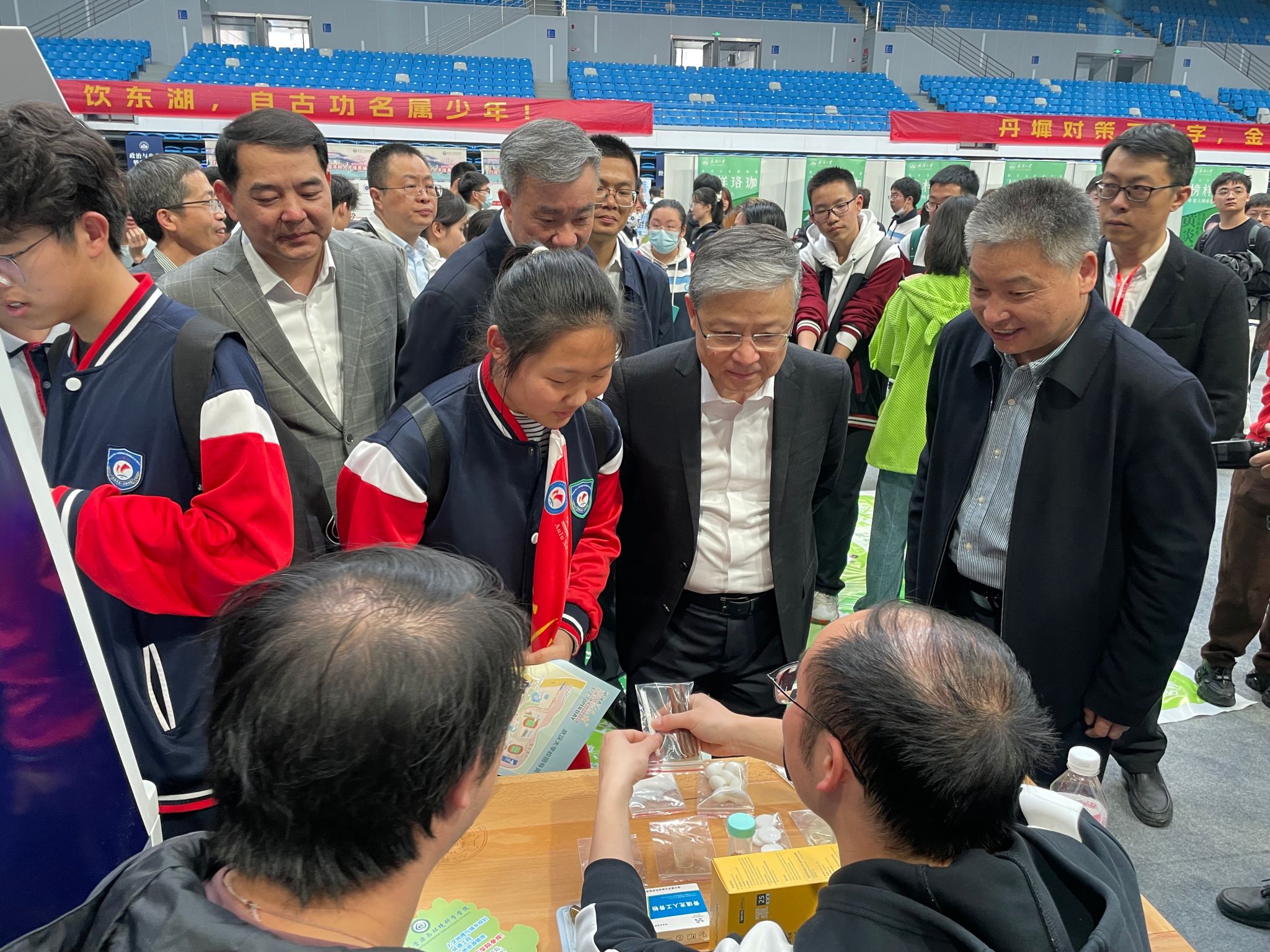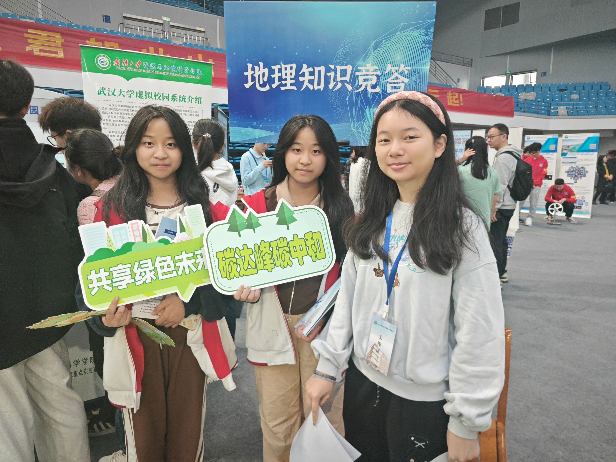 在卓尔体育馆的主会场中,学院展示了“生物质资源高值化利用”和“地理科学实习图鉴”等特色成果,学院志愿者为高中生们介绍各种生物质资源和教学实践活动。