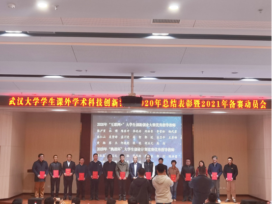 胡石元教授获2020年“互联网+”大学生创新创业大赛优秀指导教师,邓红兵教授和胡石元教授获2020年“挑战杯”大学生创业计划竞赛优秀指导老师,党委副书记冯丹和团委书记华翔获2020年“挑战杯”大学生创业计划竞赛先进工作者。