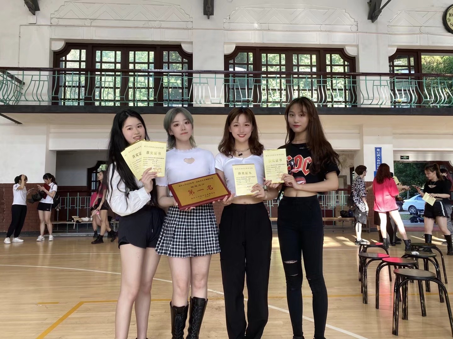 第一届体育艺术舞蹈比赛上取得团体赛奖项,这些进步都是我们能看见的,是靠着所有人一步一个脚印的努力达到的。