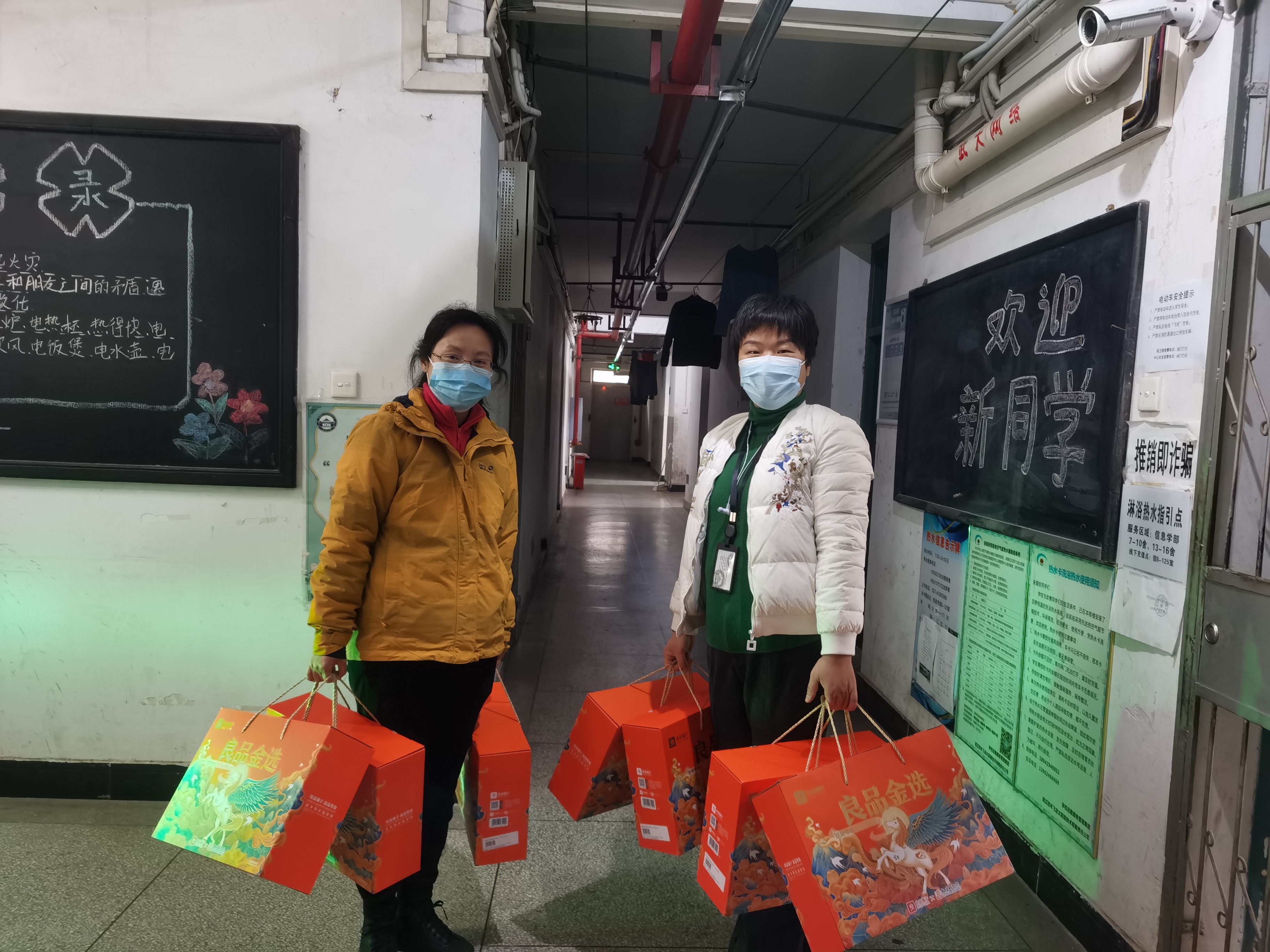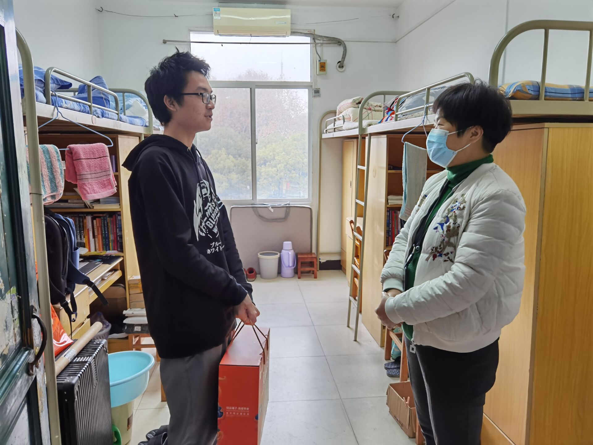寒假留校本科生,对学生们进行节日问候,并送上新春“年货”。