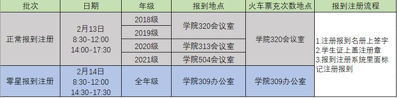 按照学校《关于2021-2022学年第二学期普通本科生报到注册》的通知要求(//uc.91sxs.org/info/1039/12866.htm),2022年2月13日(周日)全天为普通本科生报到注册时间。同时学校为方便2月13日晚到校同学报到,注册系统开放时间为2月13-14日两天。根据疫情防控要求,本次采用年级分开报到的原则,现将报到注册工作安排如下,请同学们携带校园卡和学生证到自己年级所对应会议室办理报到注册手续。