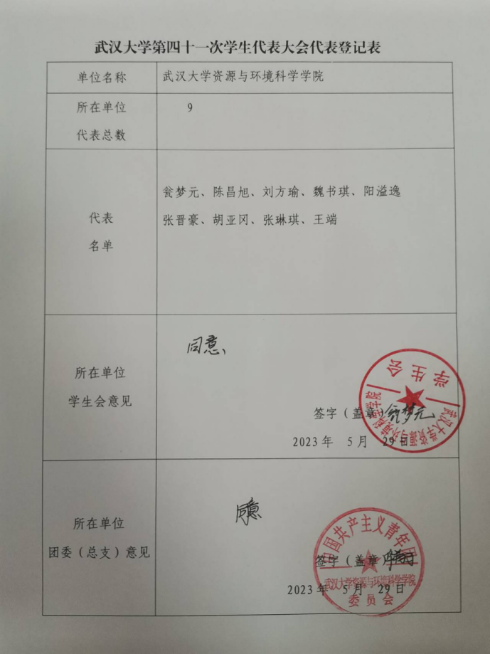 第四十一次学生代表大会代表名单,代表名单公示如下: