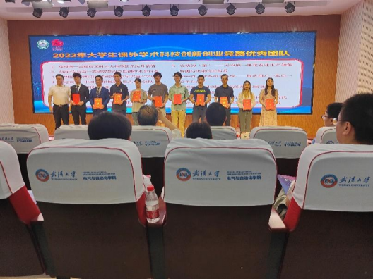 在本次表彰中荣获多个奖项,同时斩获“2022年学生学术科技文化节活动优秀组织单位”和“2022年大学生课外学术科技创新创业竞赛先进集体”两项集体奖。以2020级博士研究生林德坤为队长的项目《智能生态云脑—生态环境智能监测的引领者》获“2022年大学生课外学术科技创新创业竞赛优秀团队”,院长沈焕锋教授、副院长邓红兵教授、地信系黄文丽副研究员、曾超副教授等四位老师获评“2022年大学生课外学术科技创新创业竞赛优秀指导教师”,党委副书记冯丹、团委书记华翔获“2022年大学生课外学术科技创新创业竞赛先进工作者”。