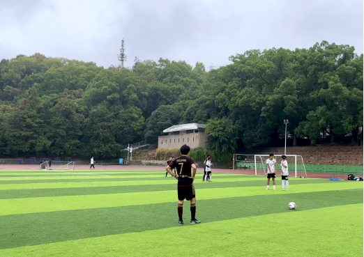 2022年10月5日(星期三)中午十二点半,资环学院与遥感学院的四分之一决赛即将在桂园操场开始。尽管天气寒冷,还伴着小雨,但队员的热情也丝毫不减,早早到场开始了练习。