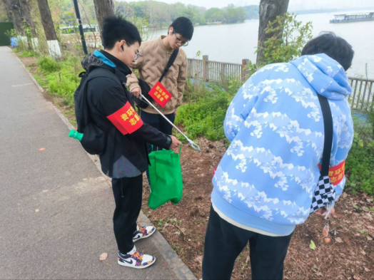 的志愿精神,资环学院2021级地信二团支部、土管团支部和地基团支部联合举办了“学习雷锋东湖清扫志愿活动”主题团日实践活动。