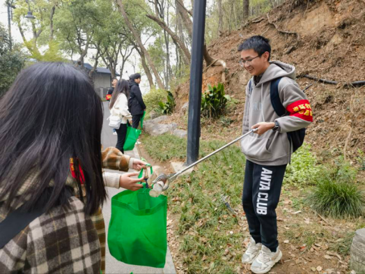 经过一个小时的长途跋涉,志愿者们来到了著名的东湖一棵树。历经沧桑的古树依然枝叶繁茂,在树的后方,便是东湖的入口,志愿者们从东湖绿道中穿过,一路上一边欣赏美景,一边注意身旁的纸屑垃圾,及时将其捡入备用的垃圾袋中。一行人走走停停,很快所经过的地方都干净了许多,呈现出崭新的面貌。在这个过程中,分专业后还不算熟悉的同学们之间也在相互的配合之中少了份陌生,多了份热情,每个人都积极参与其中,给原本静谧的东湖增添了不少欢声笑语。在温柔的春色中,雷锋精神得到了传承,志愿者的优良品质也在实践中绽放光彩。