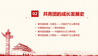 共青团在历史上共经历了两次建立、两次改名、一次改造,中国共青团的名称也随之变化。从社会主义青年团到中国共产主义青年团,从青年救国会到新民主主义青年团,每个名字都标志着团的新历史发展阶段的到来。通过短片《牢记百年团史,展青春之样貌》回顾了共青团的主要历史阶段和发展路径,带领大家深入学习团的成长发展史。