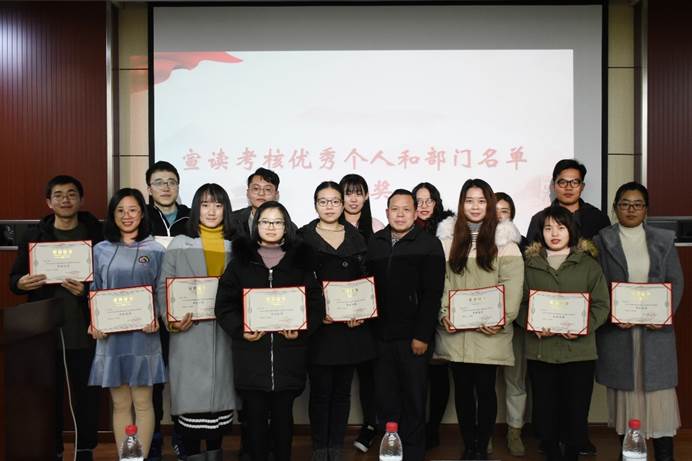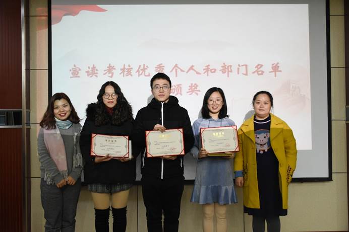 大会第三项,研究生会主席王雪宣读了学院第十七届研究生会中期考核结果。江书记、华老师和梅老师依次为方莹等14名考核优秀的同学,宣传部等3个考核优秀的部门颁奖。王雪表示,研究生会的工作离不开各部门的团结协作,是每一个研究生会成员共同努力的结果。希望考核优秀的同学再接再厉,不断进取,力争在今后的工作中取得新的更大进步,并号召全体研究生会成员以他们为榜样,继续努力奋斗,全心全意为研究生服务,为学院研究生工作建设发展贡献力量。