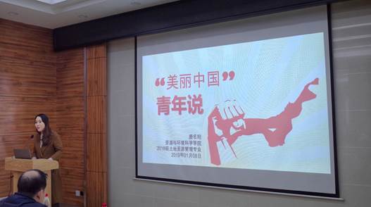 2018级土地资源管理专业博士研究生唐名阳进行 “美丽中国青年说”的主题宣讲。宣讲分理论宣讲和圆桌讨论两个环节进行。学院党委副书记江尧林、院党政办易真老师、研究生辅导员华翔、梅菲出席本次活动,全院26个研究生党支部近60余人参与学习。