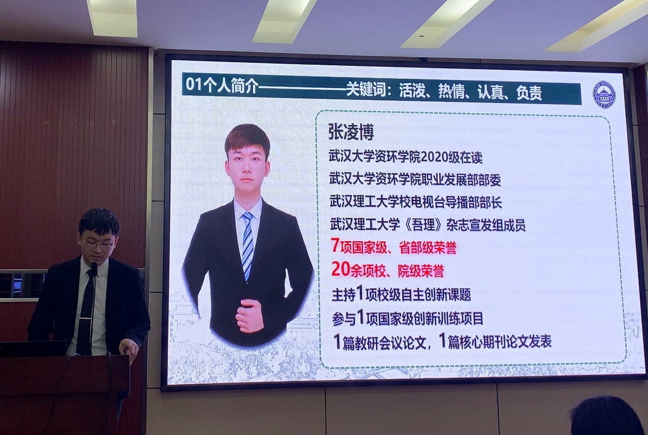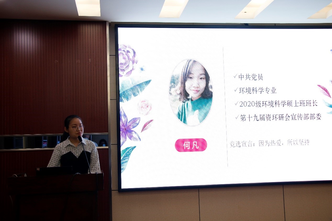 研究生会主席团成员张俊杰同学也对第十九届研究生会的工作进行了肯定,以及感谢了资环研会对校研会的工作的支持,在服务同学、研会改革、思想建设等方面对提出了期望。