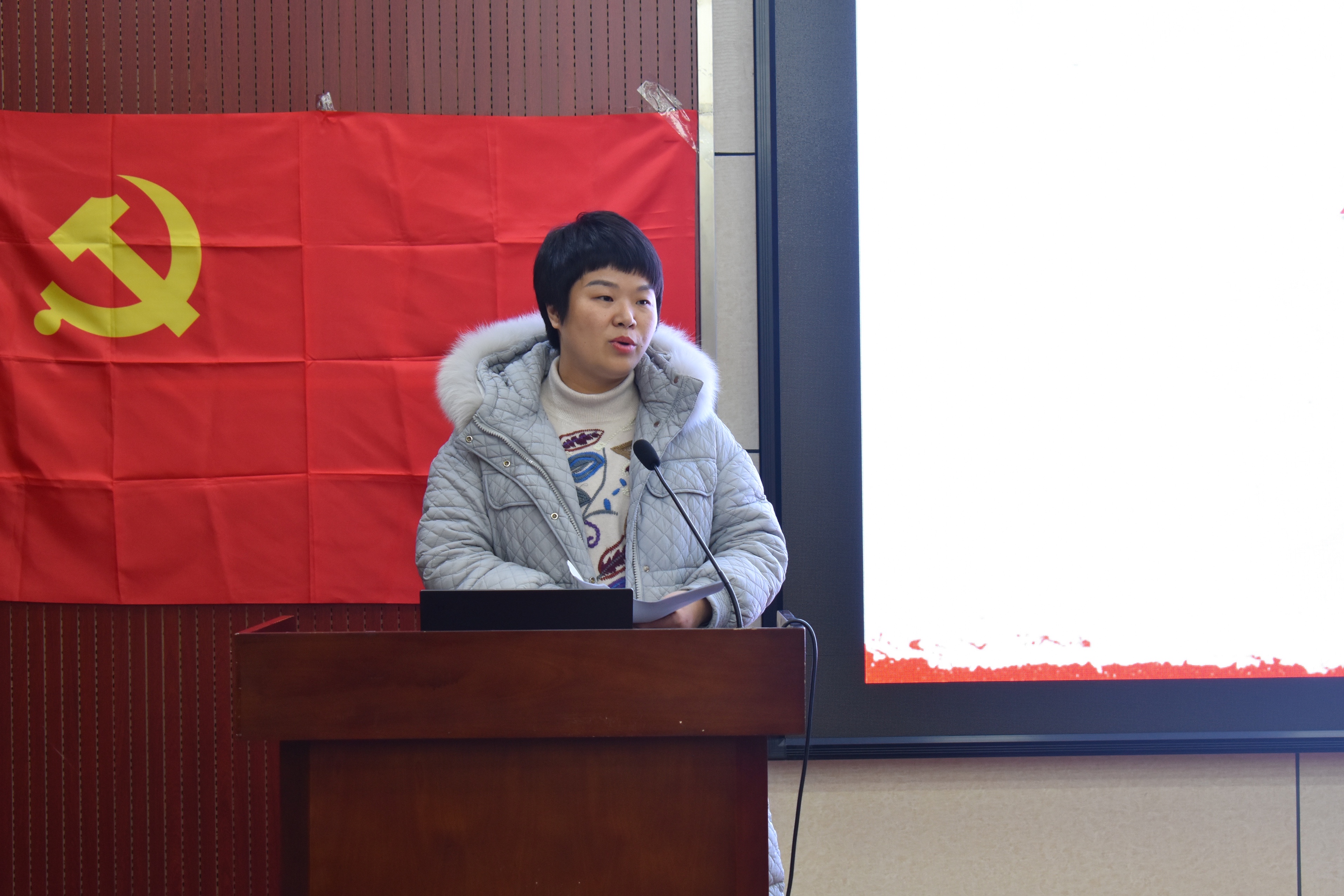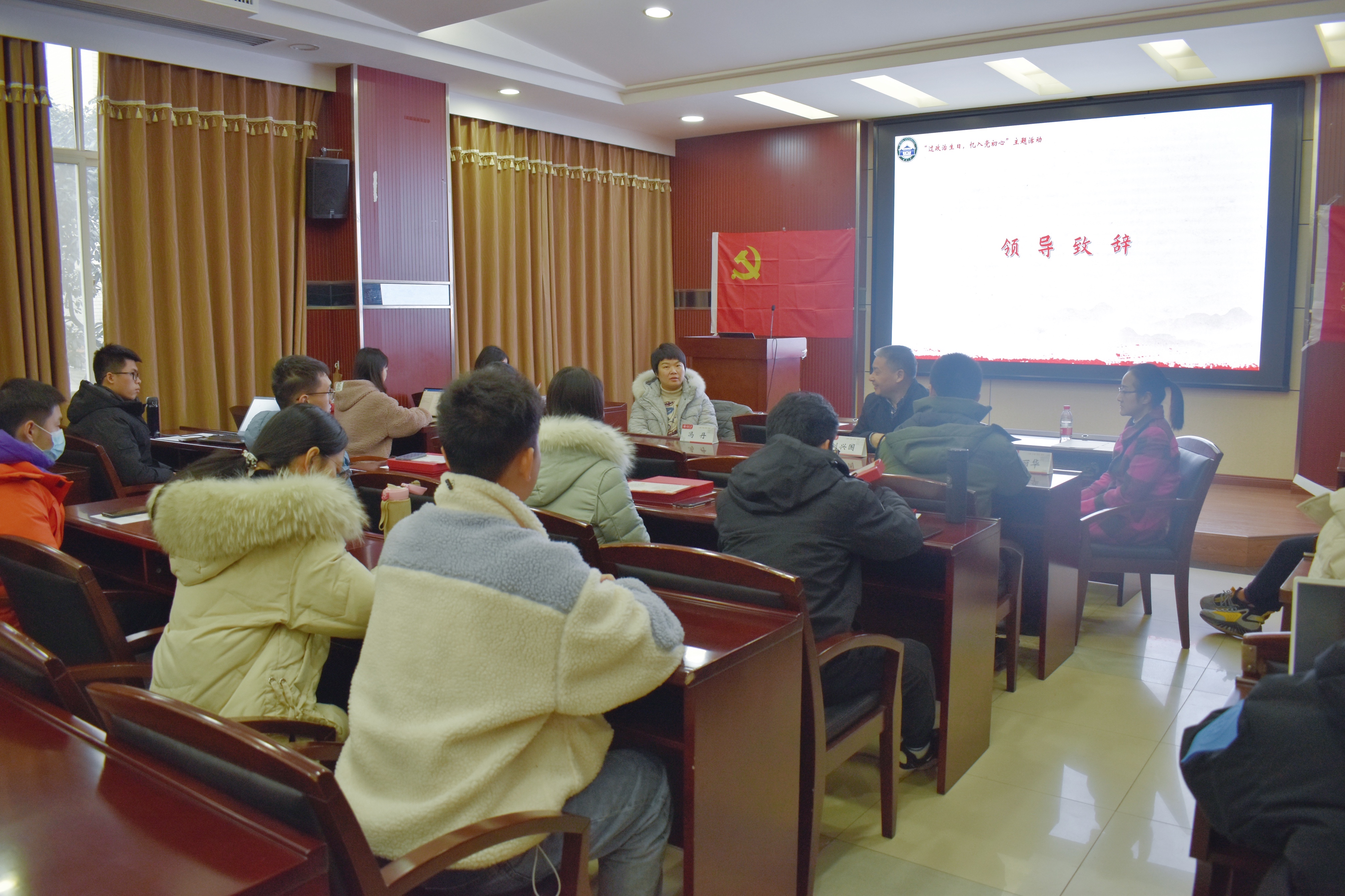 活动第二项:学院党委副书记冯丹致开幕式辞。冯书记首先对学院研究生骨干的工作进行了肯定,包括今年在党建工作、学术工作、文体工作等多方面取得的显著成效。同时提出了开展一些优秀党支部活动的意见与建议。她表示,通过这次为党员过“政治生日”的活动,进一步强化学生党员干部的理想信念,为学院争创党建工作新高度做出了示范。