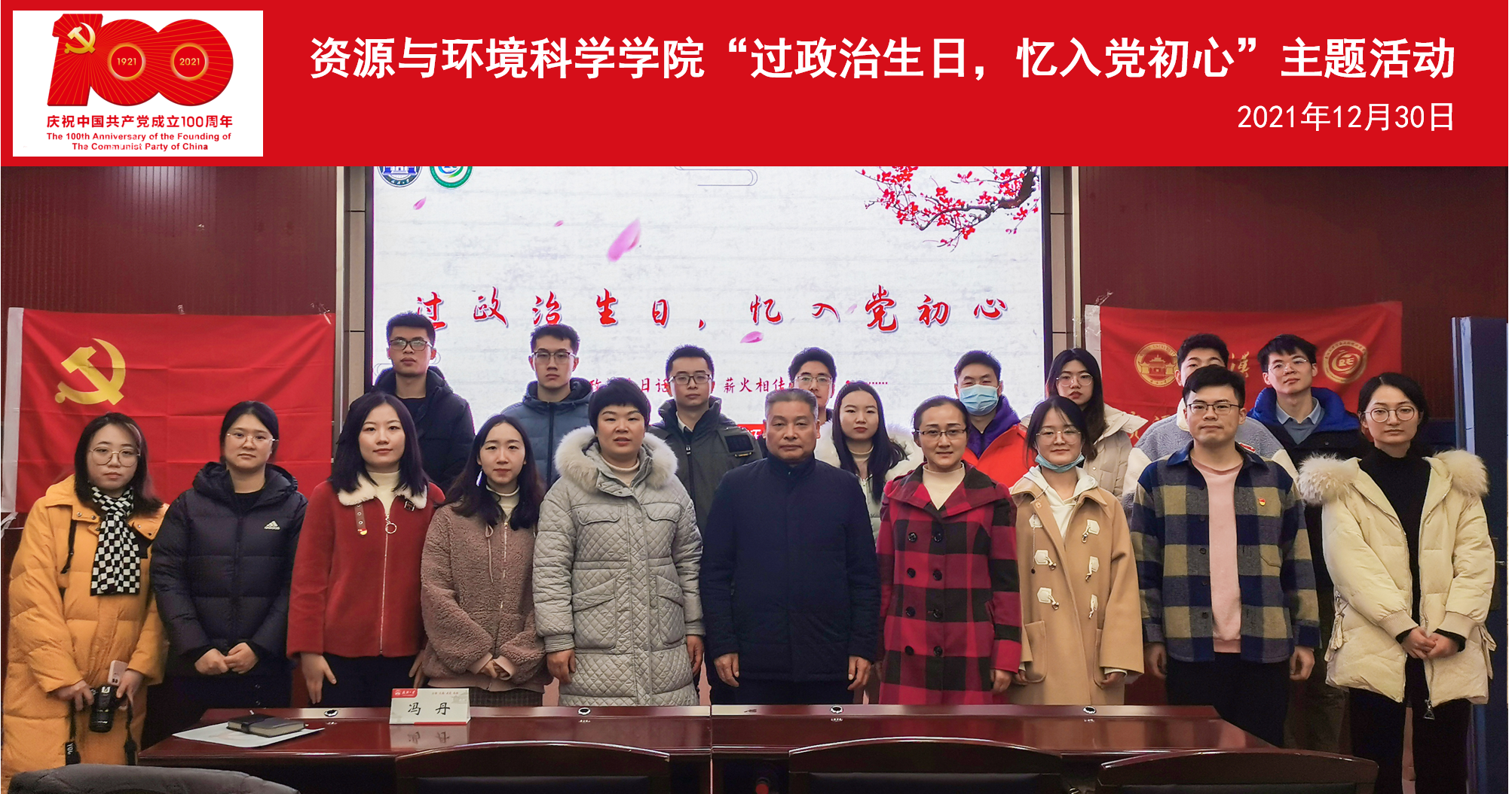 集体重温入党誓词后,地理科学与国土资源系研究生第五党支部书记程鹏有感而发:“过‘政治生日’就像是一束火把,照亮了同志们的初心。作为新时代青年党员,我们恰逢盛世,肩负重任,应当更加坚定理想信念,赓续红色薪火。”