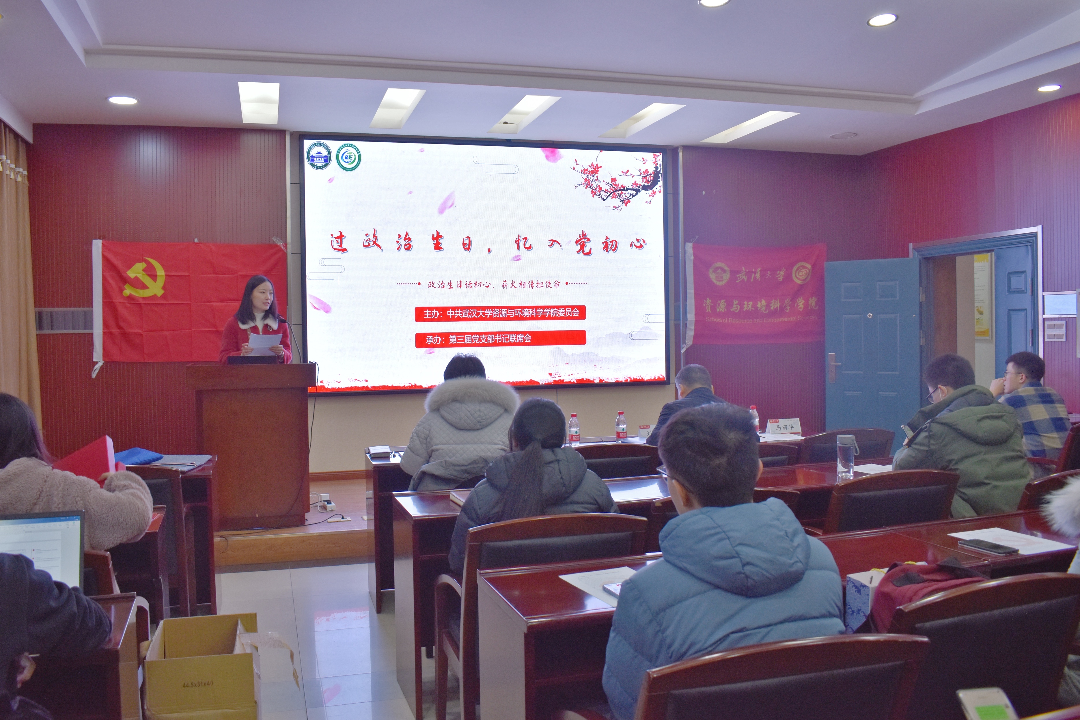 首次“过政治生日,忆入党初心”主题活动在学院220会议室举行。活动由第三届研究生党支部书记联席会分管组织工作负责人盛舒童主持,学院党委书记刘兴国老师、党委副书记冯丹老师、学生工作办公室主任马丽华老师及学院各研究生党支部书记参加了本次活动。活动包含“为党支书过政治生日”、“意见征求专题会”、“党支书联席会例会”三个部分。