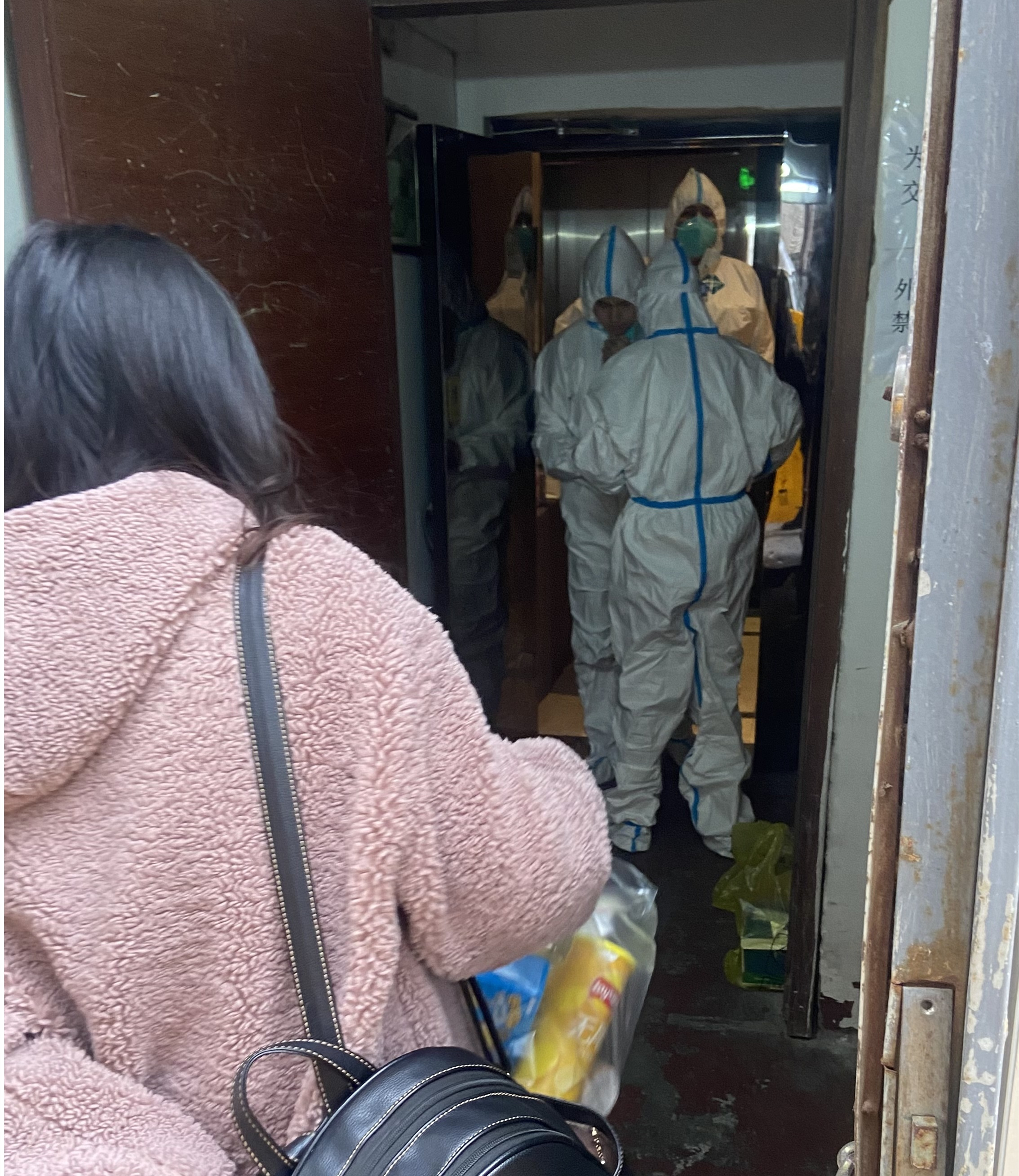 研究生党支部书记联席会成员在辅导员老师的带领下驱车前往校外隔离地点,给正在隔离的同学送去生活物资。