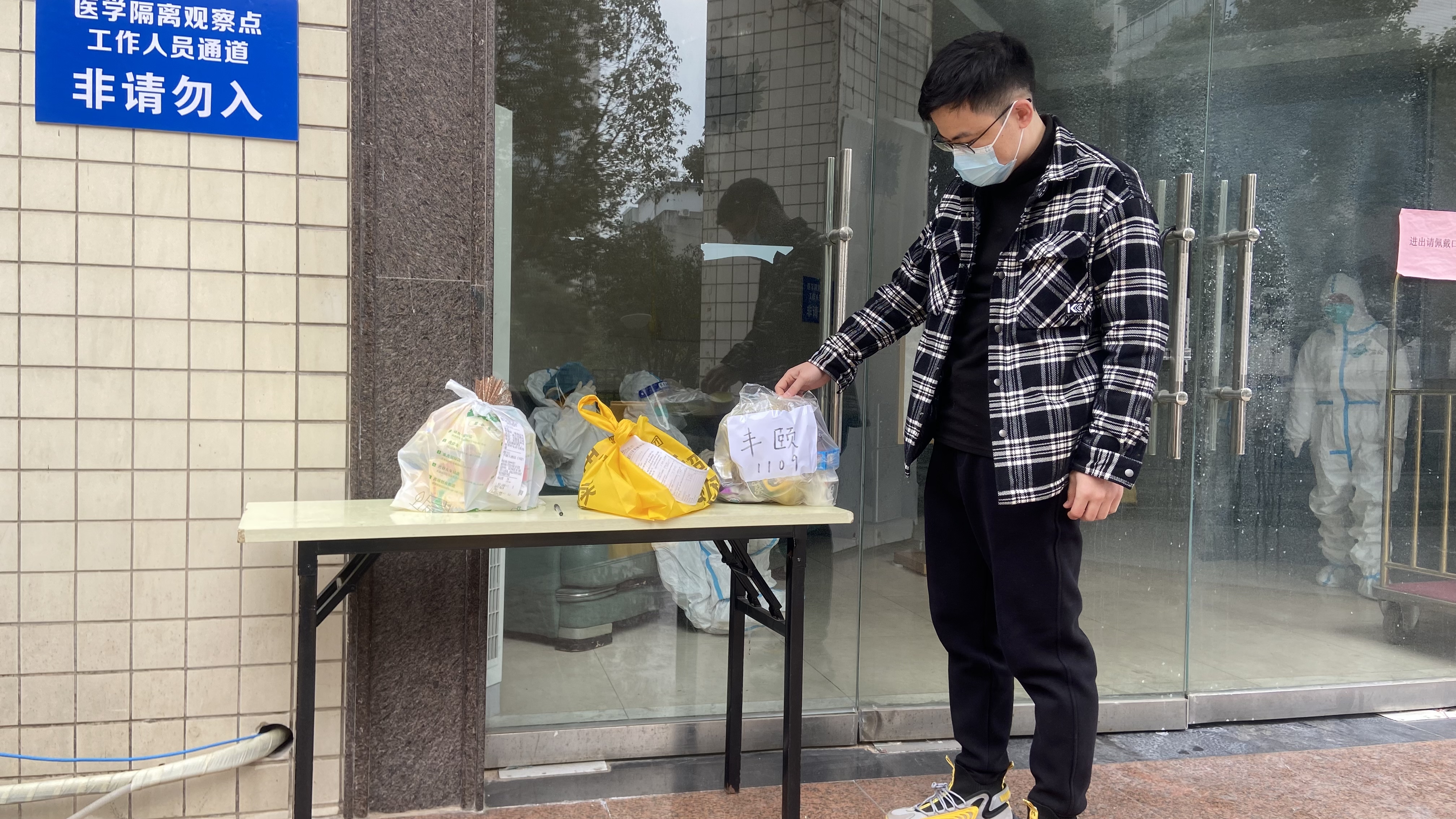 隔离酒店楼下,学院研究生辅导员通过手机连线楼上正在隔离的同学,向他们送去关爱与问候。隔离同学对学院的关心和关怀表示由衷感谢,并将继续配合防疫工作,在以后的学习生活中充分发挥党员先锋作用,用自己的行动和表现为学院建设奉献自己的力量。