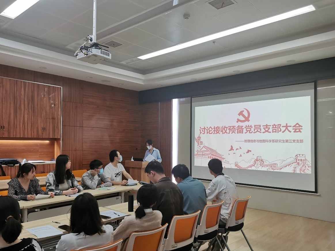本次预备党员接收大会和预备党员转正大会的成功召开,为地理信息与地图科学系研究生第三党支部的发展建设注入了新鲜的血液和力量。