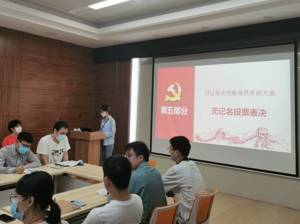 发展对象廖佳君同志、黄煦原同志、叶蕾同志汇报对党的认识、入党动机、本人履历、现实表现,以及需向党组织说明的其他问题。黄煦原同志的入党介绍人赵冲、王卓伦同志介绍黄煦原同志的基本情况,廖佳君同志的入党介绍人沈铃英、张梦同志介绍廖佳君同志的基本情况,叶蕾同志的入党介绍人包雨睿、孙晴萱同志介绍叶蕾同志有关情况。入党介绍人对三位同志能否入党表明了意见。之后,组织委员辛成同志代表支部委员会报告对三位同志的审查情况,与会党员发表意见,对廖佳君同志、黄煦原同志、叶蕾同志能否入党进行充分讨论。与会党员依次对发展对象能否入党进行无记名投票表决。