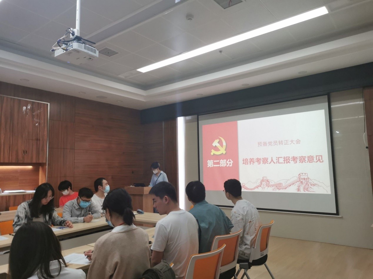 2022年3月15日晚七点,地理信息与地图科学系研究生第三党支部于电脑城429会议室召开预备党员接收大会与预备党员转正大会,会议由支部书记张梦同志主持。本次会议主要讨论张江玥、申晴蕾、曹浩杰、廖佳君、黄煦原、叶蕾、吴雨锟、张斌、刘诚九位发展对象的入党问题和预备党员王令琦同志的转正问题。