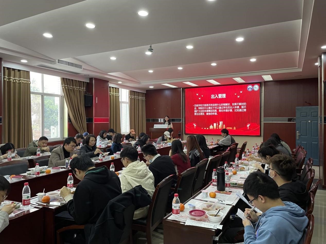 活动以午餐会的形式开展,在本次活动中,院领导老师们与同学们就出入管理、教学、实验室、宿舍等问题进行了细致、深入的交流。就同学们提出的不同问题,老师们一一热切回应,作出了积极答复。接下来一起看一看同学们关注的热点问题以及老师的答复吧!