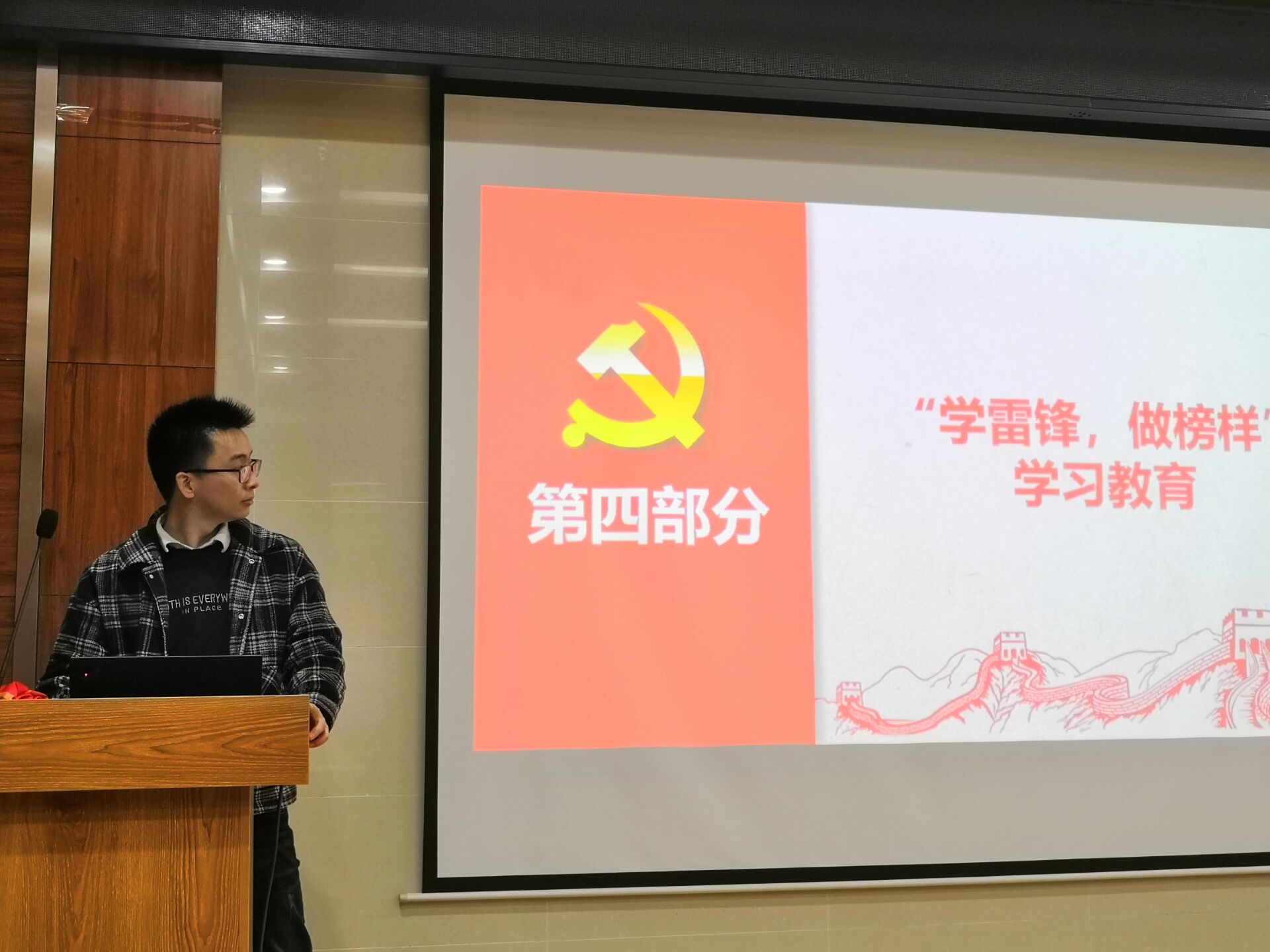 会议第四项,进行“学雷锋,做榜样”学习教育。主要是通过观看“学雷锋,做榜样”视频进行学习教育,与会成员深受感触,作为一名党员要像雷锋同志学习,把有限的生命投入到无限的为人民服务之中去。