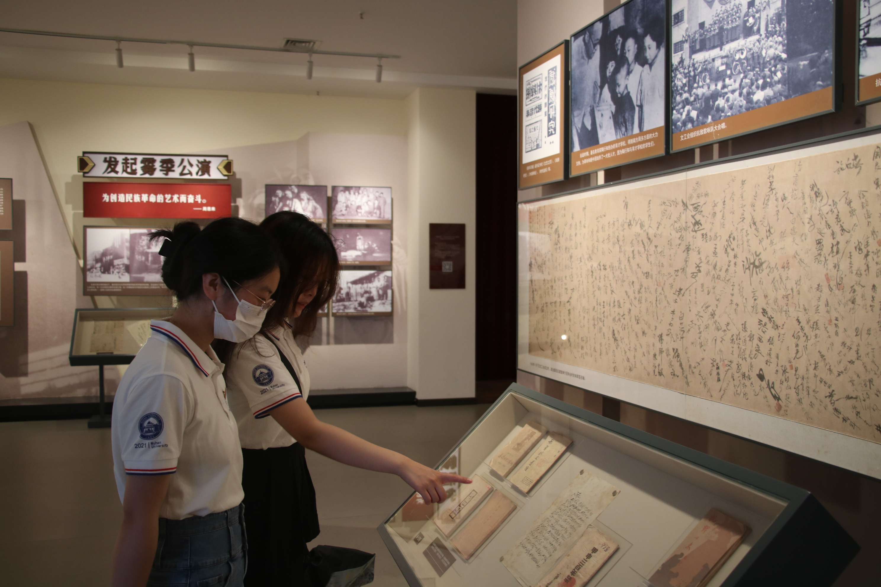 在纪念馆入口的党旗前,梅菲老师带领研究生党员们一起庄严重温入党誓词。“人无精神则不立,国无精神则不强”,革命志士和时代楷模用忠诚、汗水,甚至生命写就的事迹,时刻提醒我们“从哪里来、向何处去”,鼓舞我们不忘初心、牢记使命,让红色基因融入血脉。