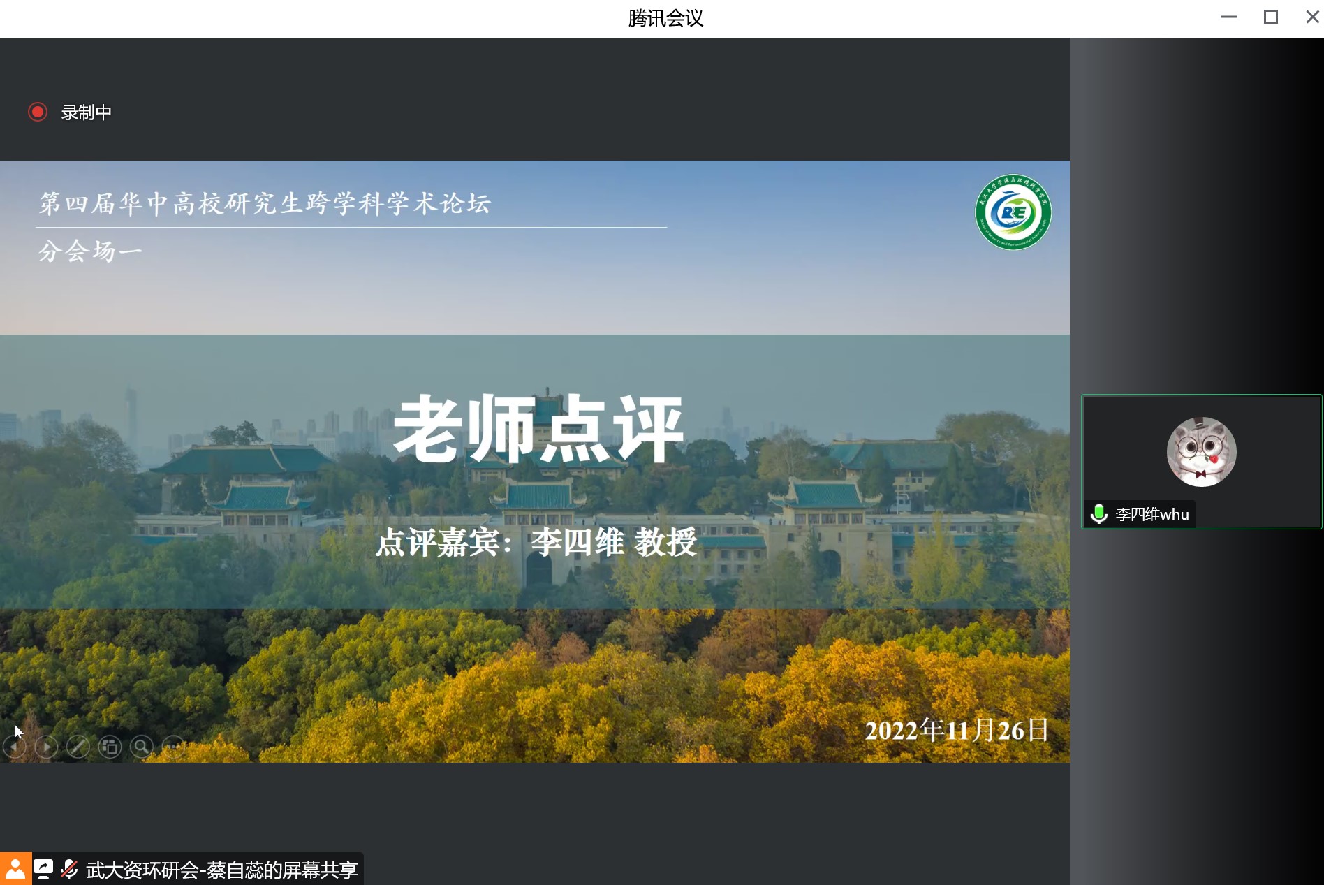 2022年11月26日,第四届华中高校研究生跨学科学术论坛于线上成功举办。本次论坛结合时代背景、关注发展需求,以“聚焦双碳目标,共谋绿色发展”为主题,收到了华中各高校优秀硕博研究生踊跃投稿,也得到相关领域专家学者的广泛关注。