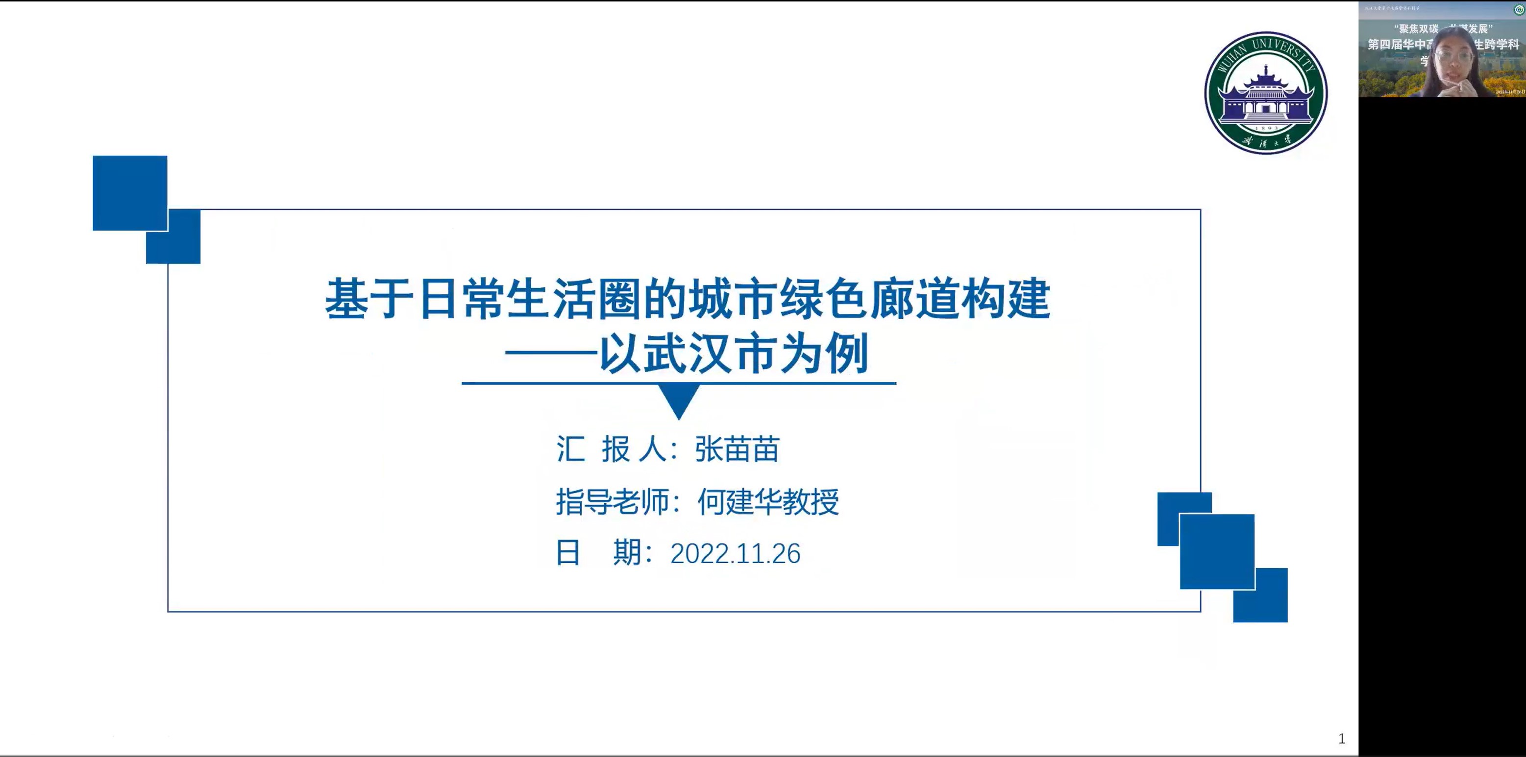 资源环境监测与规划专业博士研究生张苗苗以“基于日常生活圈的城市绿色廊道构建——以武汉市为例”为主题,提出了一种考虑三种日常生活圈构建绿色廊道的改进方法,并将日常生活圈中影响绿地稳定性的社会经济因素融入到绿廊建设中。