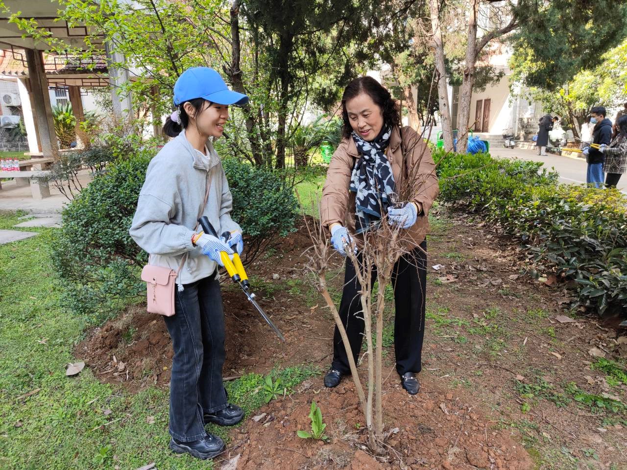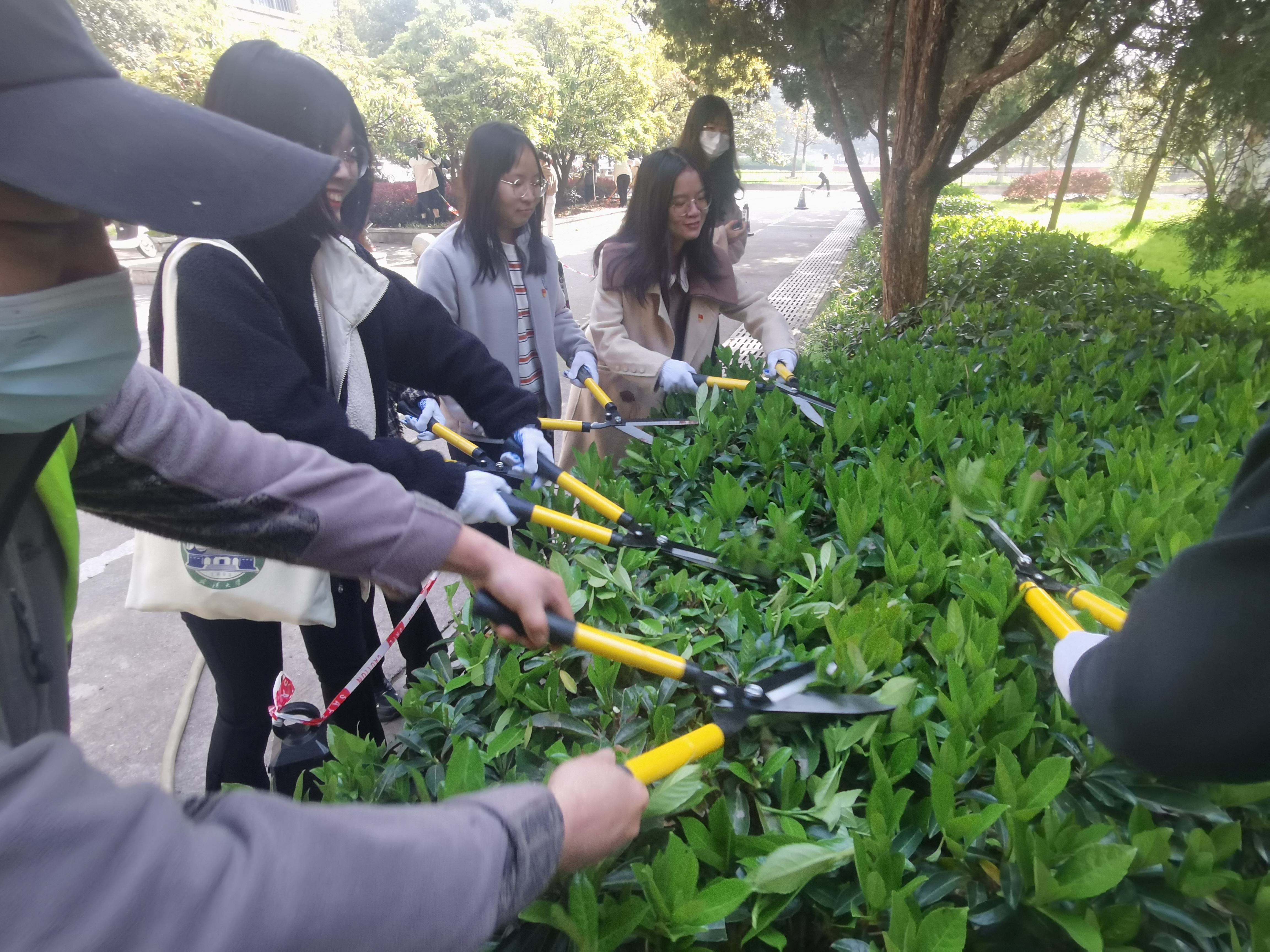学生团委副书记研究生党员杨显曾:通过今天的活动,我体会到我们美丽校园的来之不易。看似简单的剪枝工作,自己实践起来才知道其中的艰难。剪刀很重,没剪多久整个胳膊就开始酸痛;而种草也是一个技术活,看似轻松的刨坑夯土却有很多讲究。在和张主任的交流中,我了解到这些工作只是学校园林工作的一小部分,还有很多同学们看不见的更辛苦的工作。我们要尊重园林工人的劳动成果,爱惜树木,共同营造美好的校园环境。
