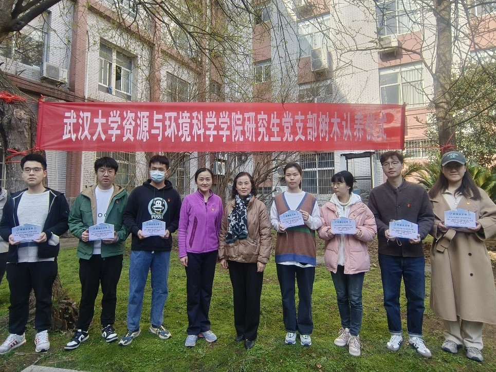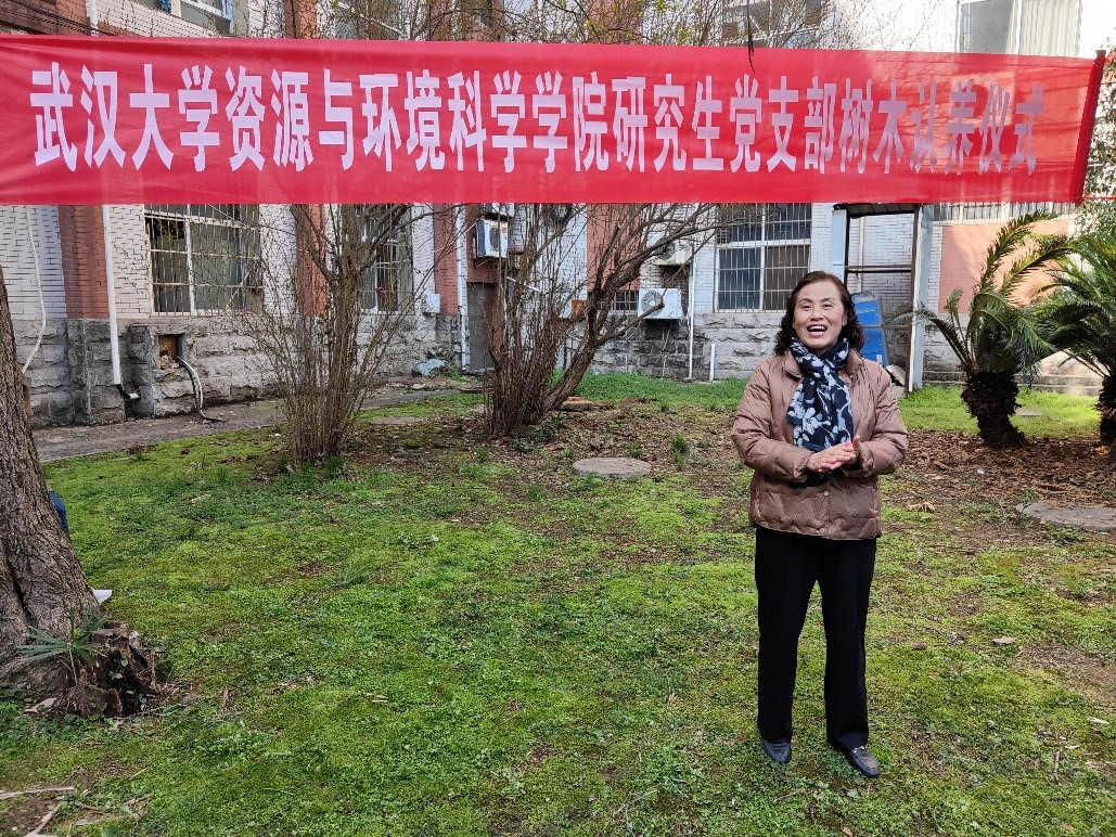 环境科学与工程系研究生第一党支部支书胡慧:这次活动很有意义。一方面,活动邀请到绿委办的老师给我们讲解了学校植物养护、树木种类等的知识,也让我们知道了学校为了环境的美化做了这么多工作,作为资环院的学生,更体会到保护树木和环境的重要性。另一方面,一个党支部一起认养一棵树,而且这棵树就在我们每天要路过的地方,方便我们养护,也让我们对学校的一草一木更增加了感情,我们会照顾好认养的小树,这是我们党支部的责任。