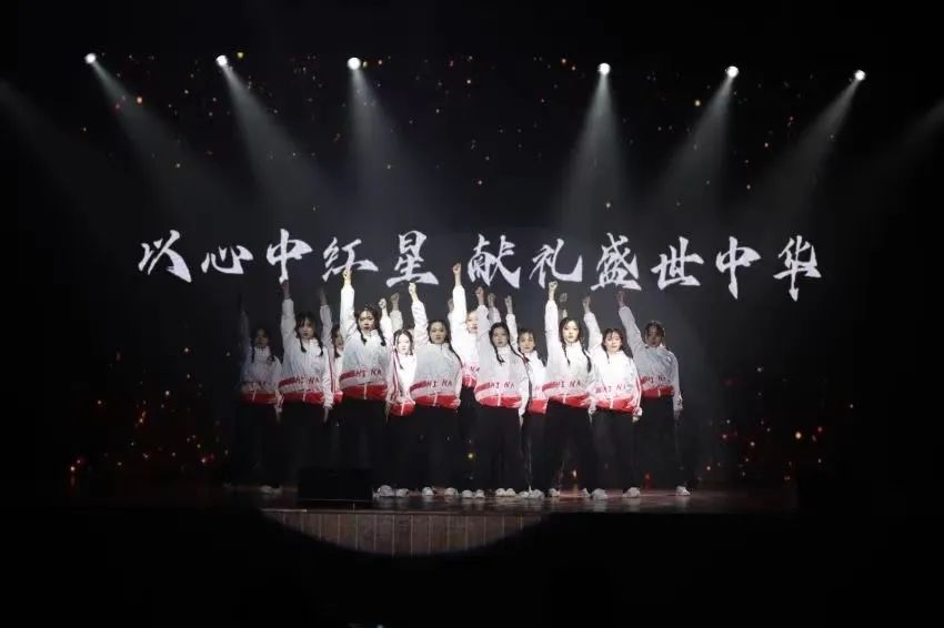 队伍第二个上场,开场时舞蹈队员们有序进场,快速准确地站在了指定位置,音乐一响起,整齐有力的开场动作让观众们眼前一亮。舞蹈整体分为四段,从受压迫到胜利,展现了浓浓的爱国情怀。每段舞蹈衔接顺畅,节奏顿挫相间,元素丰富多彩,给评委与线上观众带来了很强的视觉冲击,队员们情绪投入,表情生动,舞蹈队形变换丰富而有层次,爆点不断的动作将表演推向高潮,现场观众不断欢呼。最后,整齐划一的“祖国统一,民心所向,心中红星,献礼中华”响彻大活,为整个舞蹈画上圆满句号。