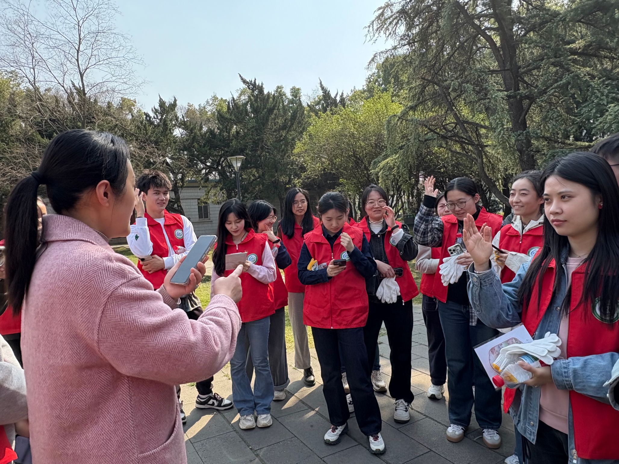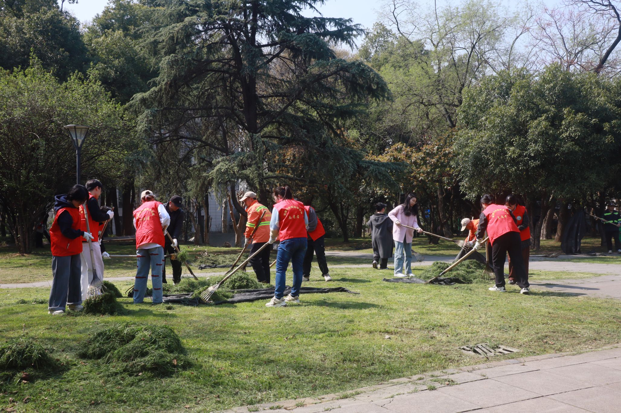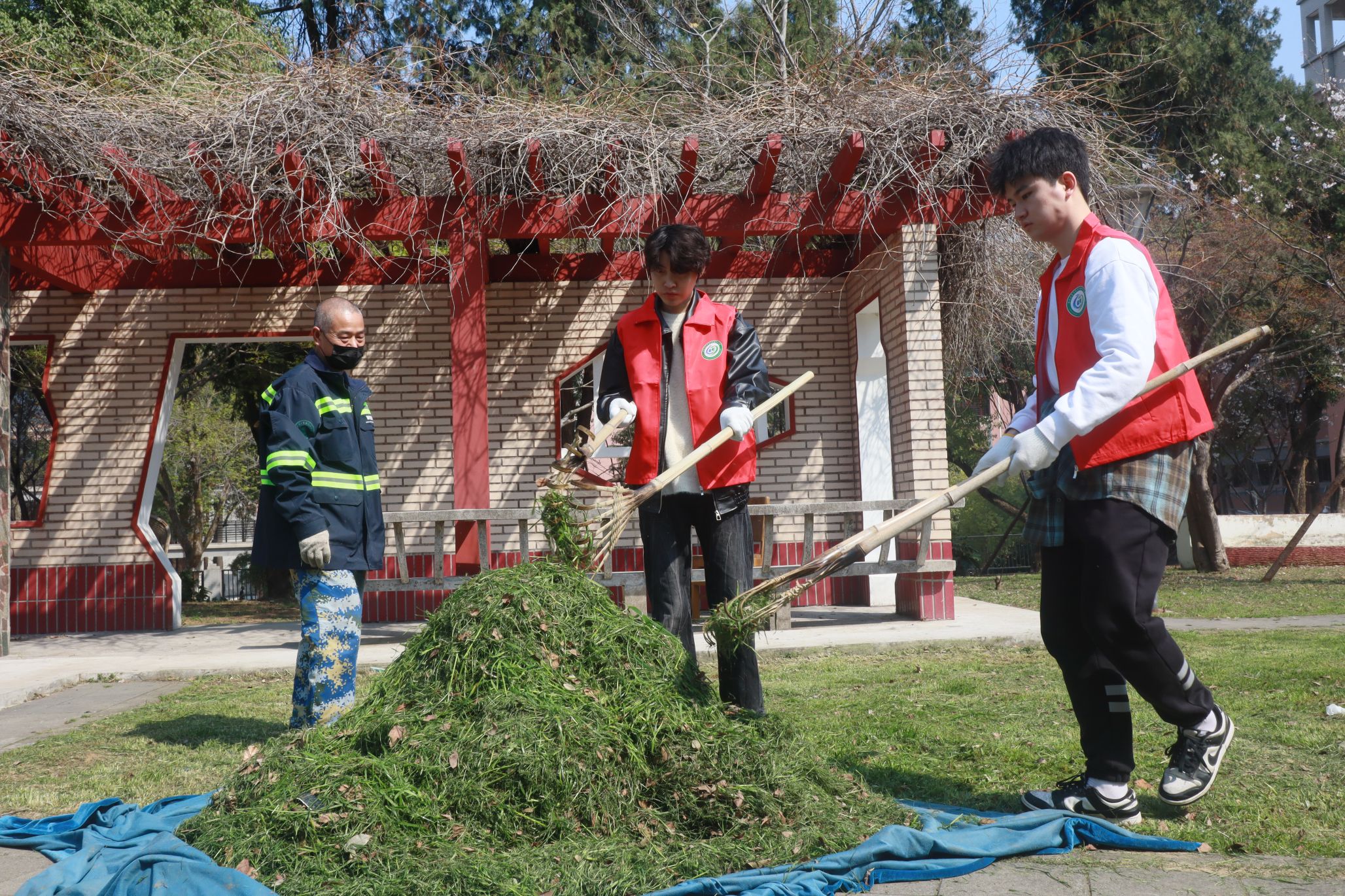 随后,在朱皓珉、余佳卉和曾君三位老师的耐心讲解和亲身示范下,志愿者们对天文台广场进行了全面清理。他们手持工具,仔细捡拾散落在草坪和道路上的石块、树叶等杂物,并对杂草进行了集中清理。志愿者们分工协作、配合默契,充分发扬了不怕脏、不怕累的志愿服务精神。经过大家的共同努力,天文台广场焕然一新,为师生营造了更加整洁、舒适的学习生活环境。