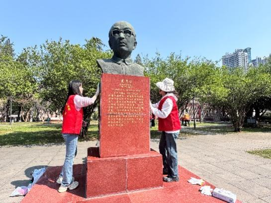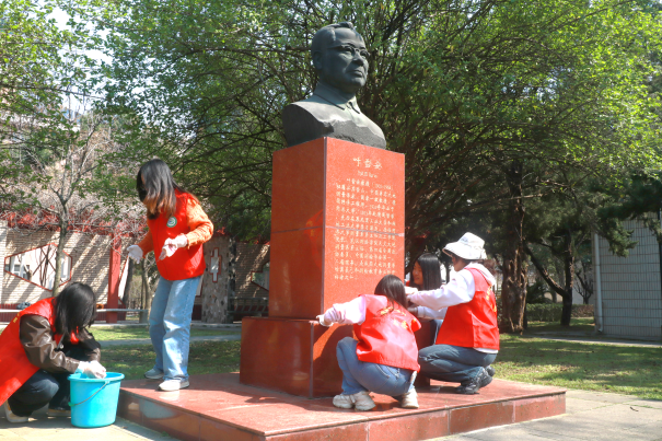 擦拭先贤雕像,传承精神薪火