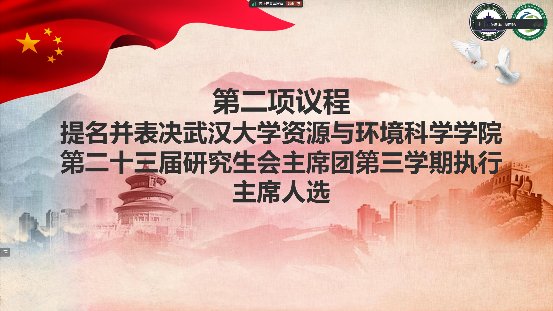 第二十三届研究生会主席团实行轮值制度,各常任代表委员审议表决通过高雨婷同学为研会第三任期执行主席。