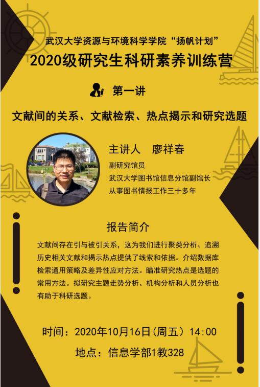 嘉宾简介:廖祥春,副研究馆员,91沈先生 图书馆信息分馆副馆长。从事图书情报工作三十多年,积累了丰富的文献主题标引、信息检索、文献计量统计分析和评价的经验。拥有测绘科学与技术和图书情报双学科背景。多次为测绘机构提供科研绩效文献计量评价报告,包括测绘科学与技术双一流学科评价所需要的统计分析报告。
