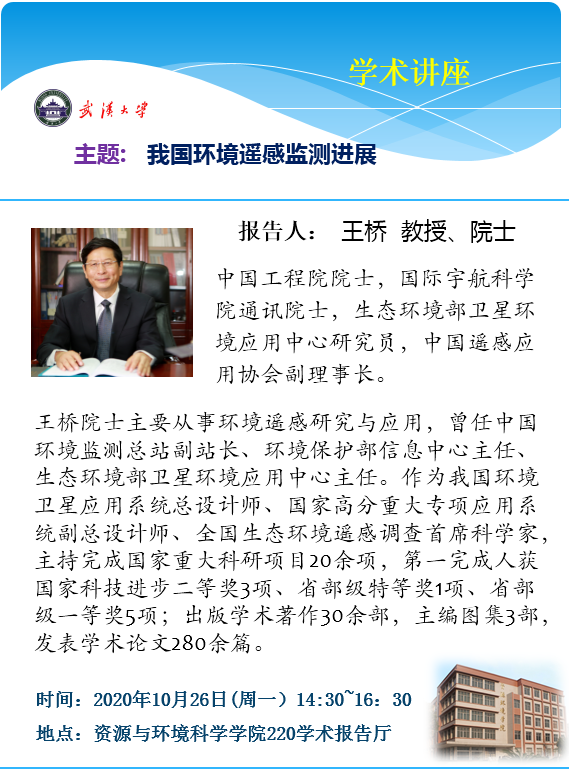 10月26日王桥院士学术报告:我国环境遥感监测进展