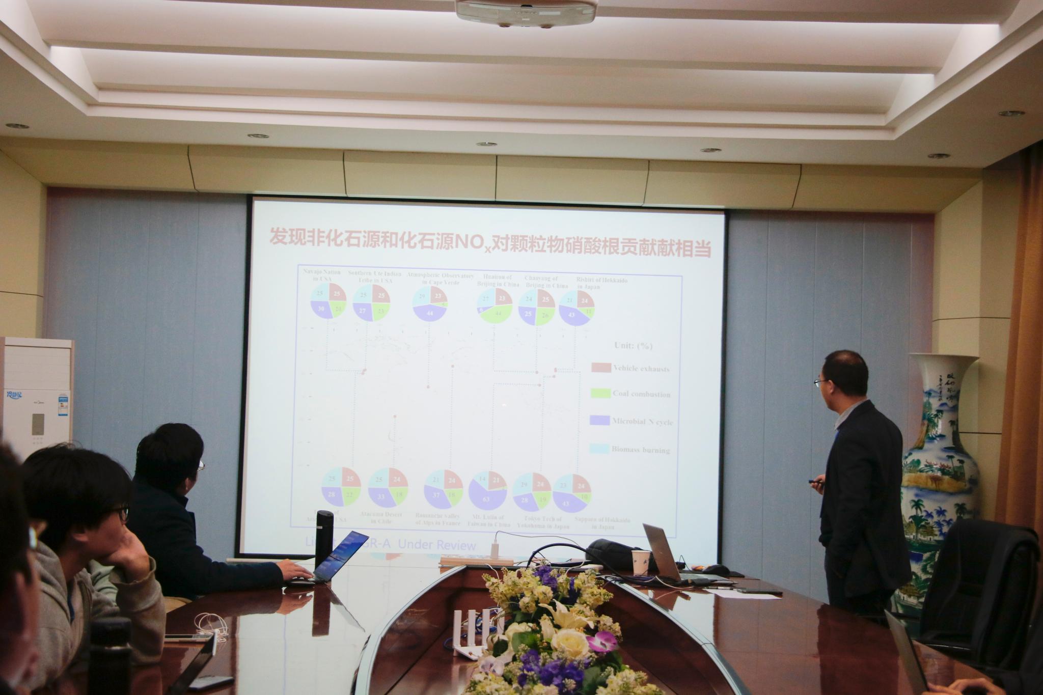 刘学炎教授开始对全球氮元素的来源、沉降分布和去向,其全球效应等背景进行了介绍,并分享了团队在全球氮元素分布中得出的新结论:非化石源和化石源NOx贡献相当,为全球减排技术的发展提供了新的思考角度。通过对北极苔原植被系统、京津冀地区的实例,分享了同位素技术在区域氮元素分布的研究应用。