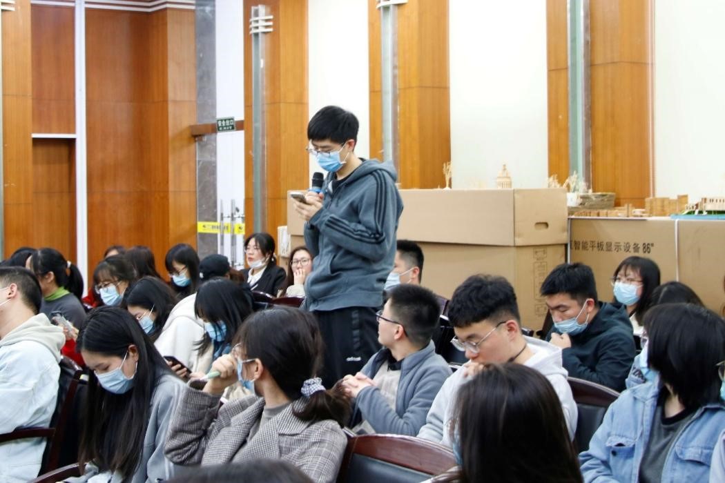 报告最后,沈教授言简意赅地为大家总结了讲座的主要内容,话音结束后,会场内一时掌声四起。交流互动环节,众多同学踊跃地发言提问,展现了良好的学术交流氛围。沈教授针对土壤环境指标的监测如何实现时空连续性、遥感数据验证、大数据降噪等问题给出了详细充分的解答,并表示同学们的提问体现出了一定的思考深度。