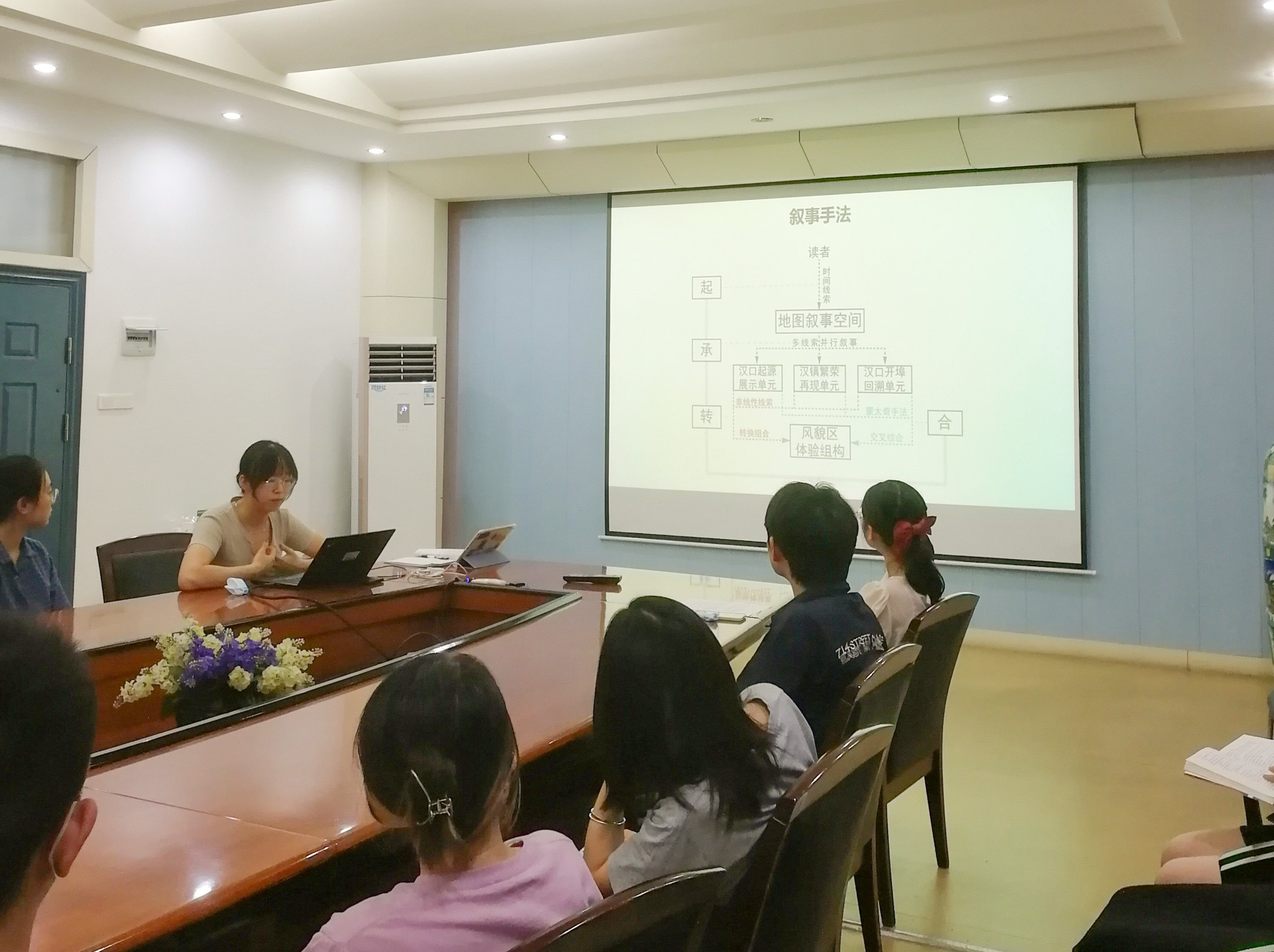 首先,由张江玥同志进行主题为《历史文化风貌区叙事地图设计》的分享报告。张江玥同志从历史文化风貌区的叙事性特征与时空维度出发,为大家详细介绍了历史文化风貌区叙事地图表达策略制定的方法与过程,提出了“载体-线索-单元-组构”的框架,并将其进行应用,最终完成了武汉市汉口历史文化风貌区叙事地图。地图将叙事策略与时空变化特征有机结合,为历史文化风貌区叙事地图设计提供很好的参考。