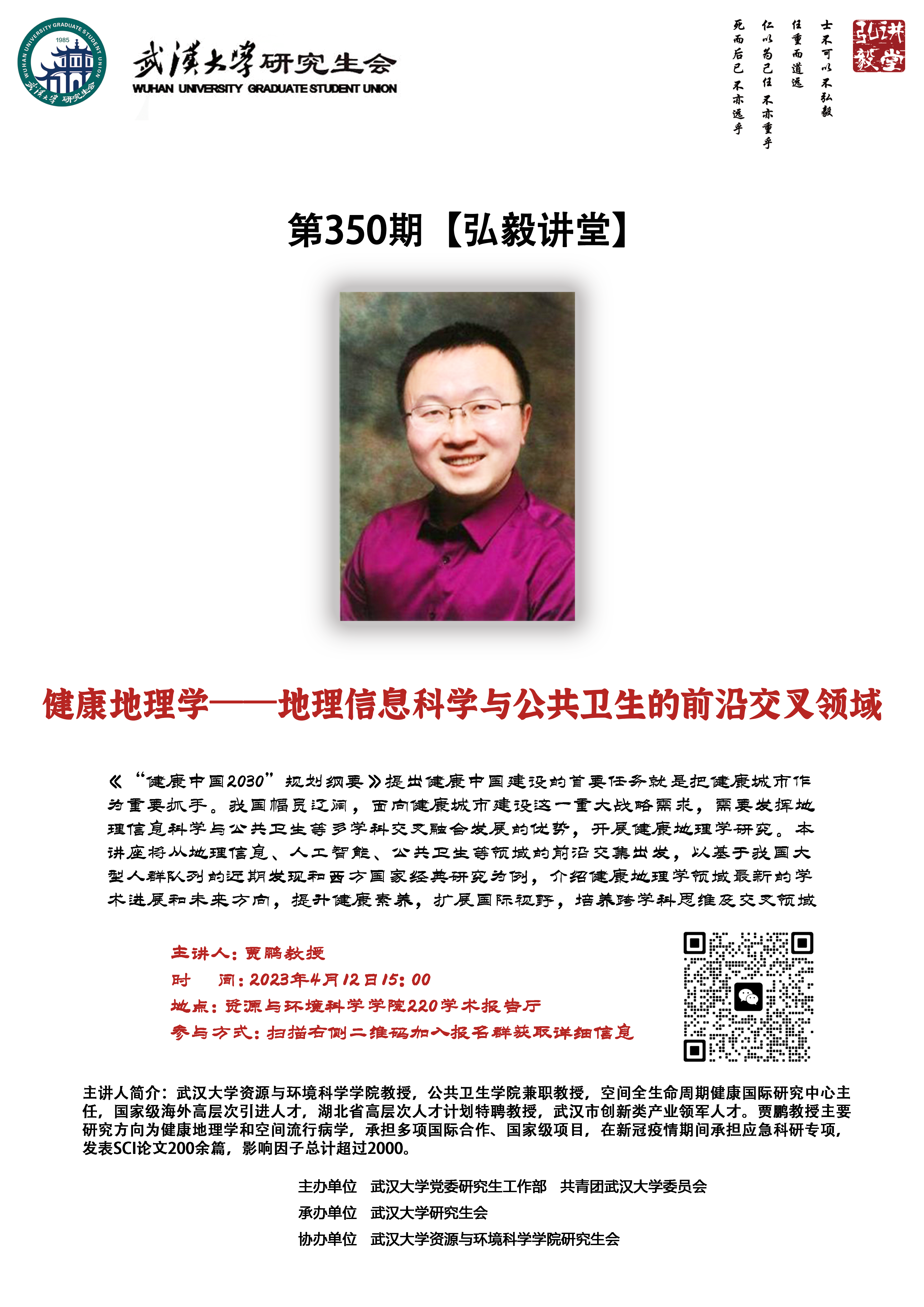 【讲座通知】第350期弘毅讲堂丨健康地理学——地理信息科学与公共卫生的前沿交叉领域